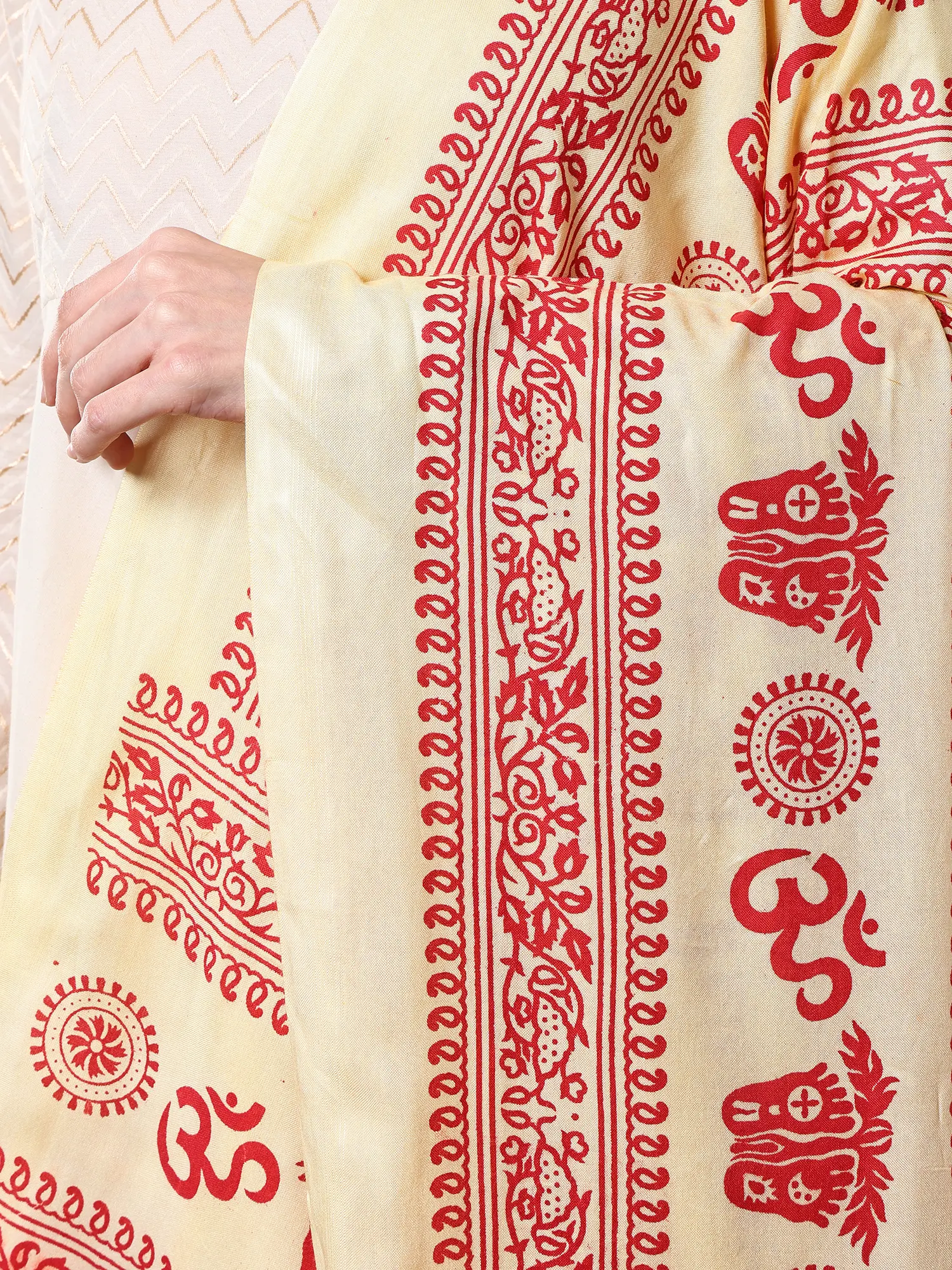 Yellow Hindu Dharma Prayer Shawl with Large Printed Om