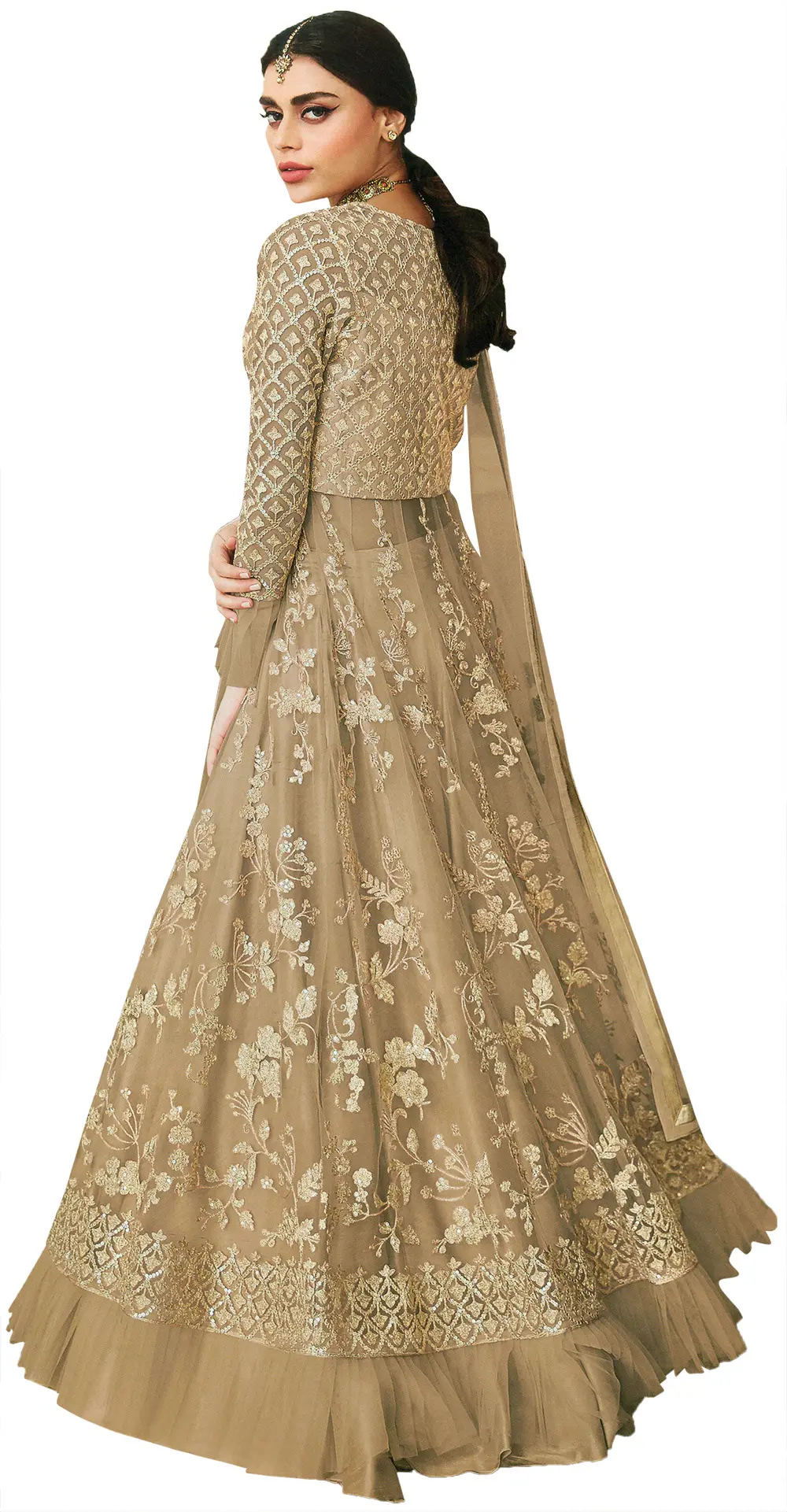 In the symphony of neutrals like an epitome of grace, the most soothing look of the season is here. Making you appear like a queen out of her palace, the entire look of this lehenga is so fine and moderate even when the whole lehenga is embellished with embroidery as well as sequences. Twirling and dancing around in this lehenga will certainly make you feel like you own the world. Notice how seamlessly the end-piece of the choli’s shoulder and lehenga are alike, where they look symmetrical to the eyes with a net-like appearance. If a lehenga has flare, gold embellished zari work, and graciously embroidered choli, then there is nothing else you need to grace your presence anywhere you go. Shimmery yet giving the most minimalistic appearance perfectly defines this heavenly attire. While striking a proper balance between dull and shimmery gold color, it is the most perfect lehenga for engagement. Pair this lehenga with a choker and maang tikka and see how the whole look amps up. Let your creative side be awake while you anticipate how to style the dupatta of this attire.