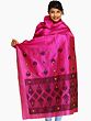 Immerse yourself in the rich tapestry of Assamese craftsmanship with this exquisite dupatta. Crafted from lustrous art silk, it offers a luxurious drape and a subtle sheen that catches the light beautifully. The vibrant fuchsia hue serves as a captivating canvas for the intricate woven bootis, showcasing the traditional artistry of Assam.
