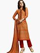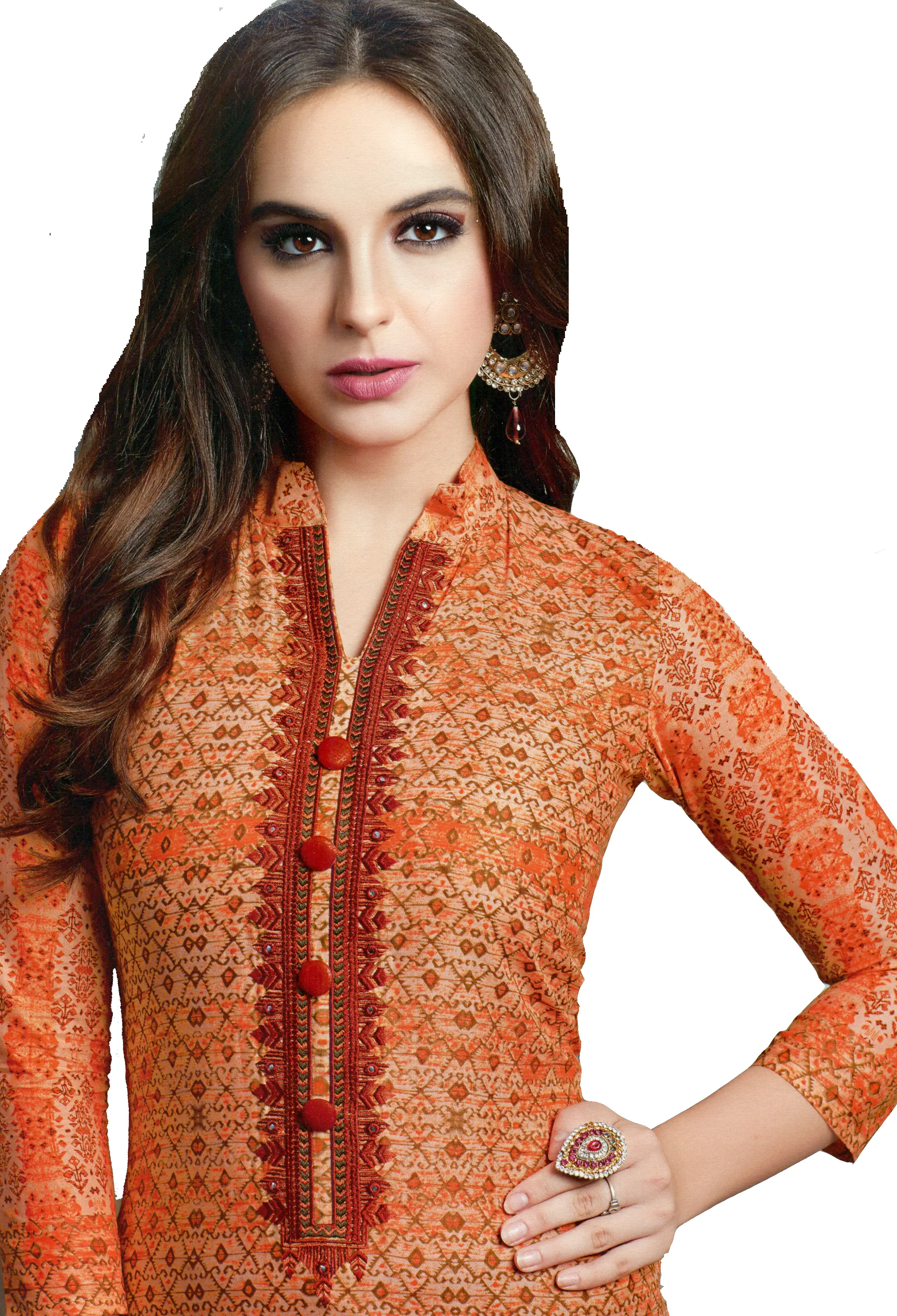 Embrace a blend of traditional charm and contemporary style with this exquisite dusty-orange printed salwar kameez suit. Crafted from pure cotton, this ensemble promises both comfort and breathability, making it a perfect choice for any occasion, from casual gatherings to more formal events. The vibrant dusty-orange hue serves as a beautiful canvas for the intricate all-over print, creating a visually captivating and dynamic design.