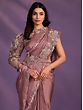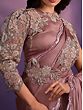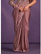 Wine Berry Crepe Satin Silk Embroidered Saree And Rose Motif In Border With Stitched Blouse