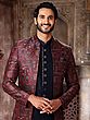 Elegant Art Silk Brocade Three Piece Indo Jacket Set With Aligarhi Pant Dazzles Grooms With Timeless Wedding Luxury