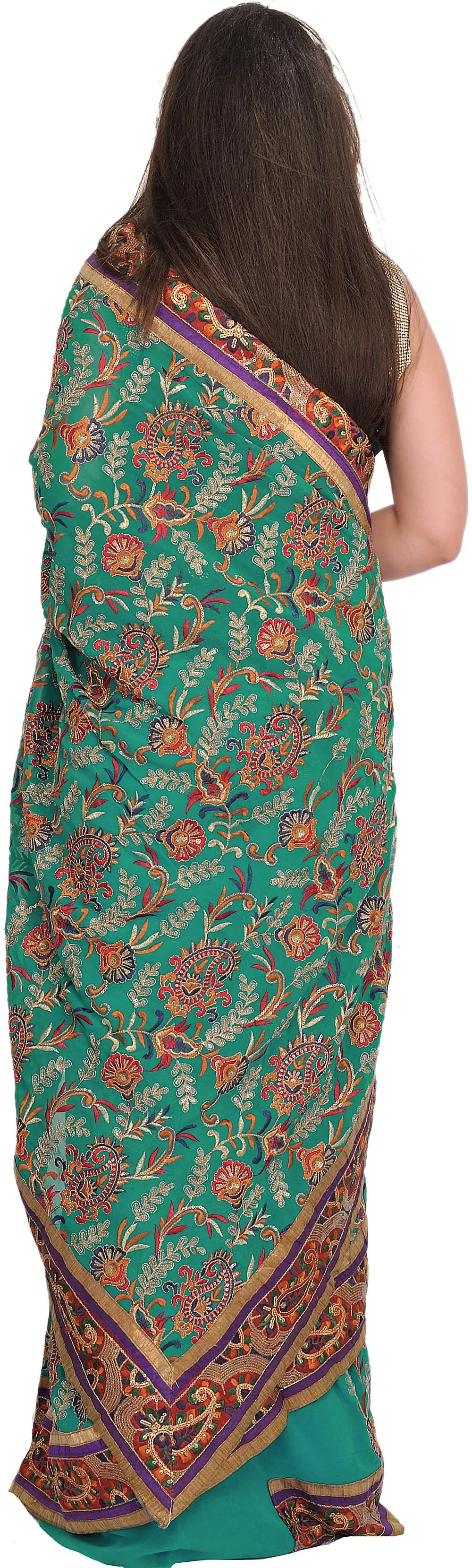 Shimmer Sari with Sequins and Crewel Embroidery All-Over