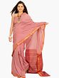 Sari with Fine Woven Checks and Brocaded Paisley Patch Border