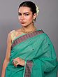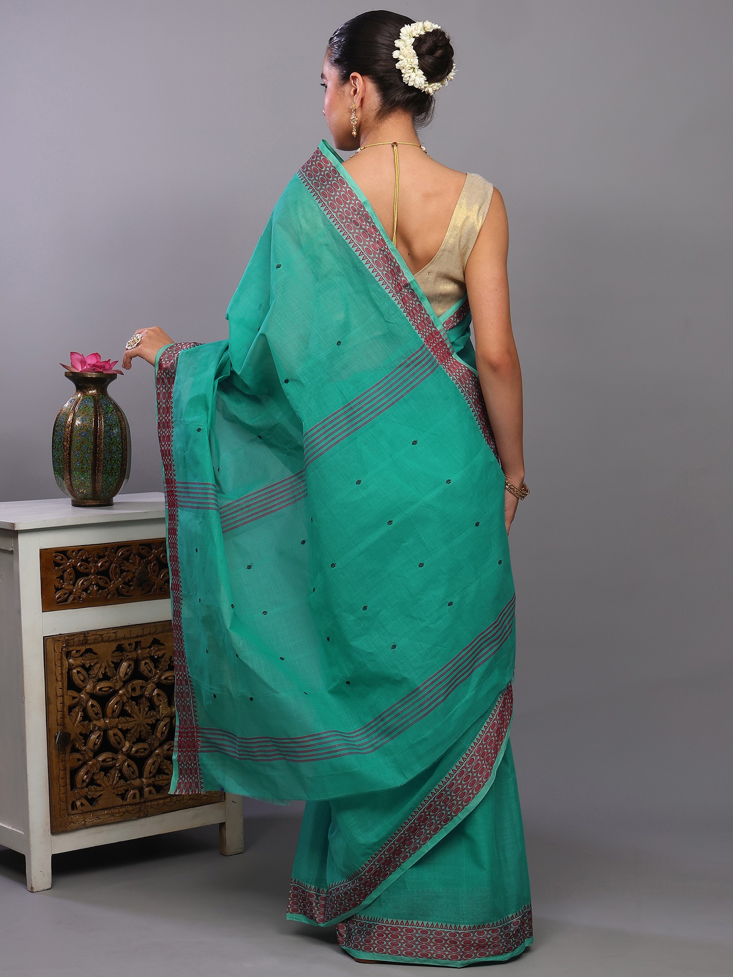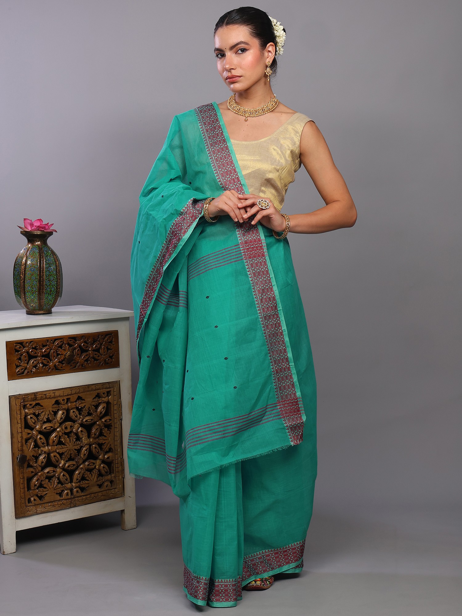Bluefin Pure Silk Saree Temple Border Saree with Embroidered Dancing Girl and Woven Motifs from Chhattisgarh
