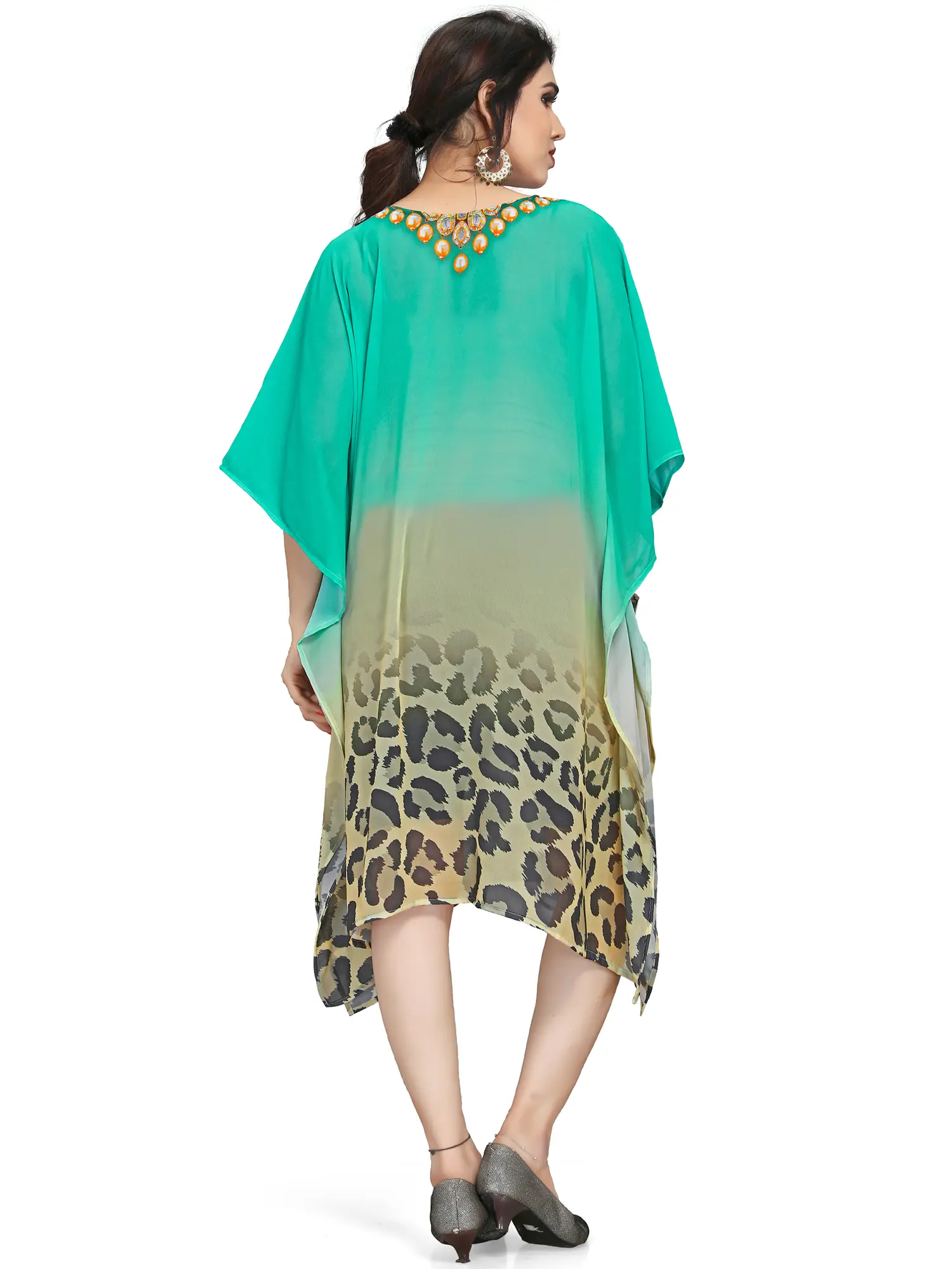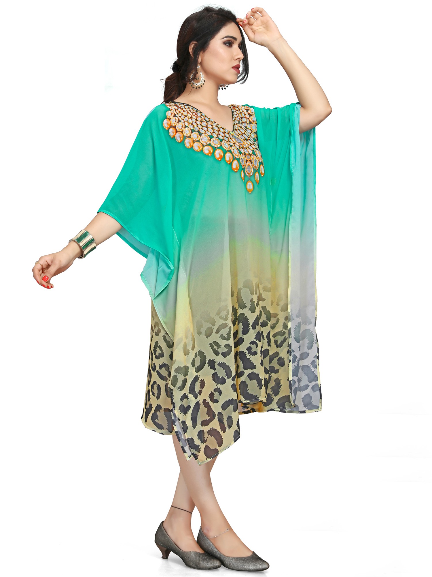 Rainbow Georgette Short Kaftan with Printed Floral Pattern