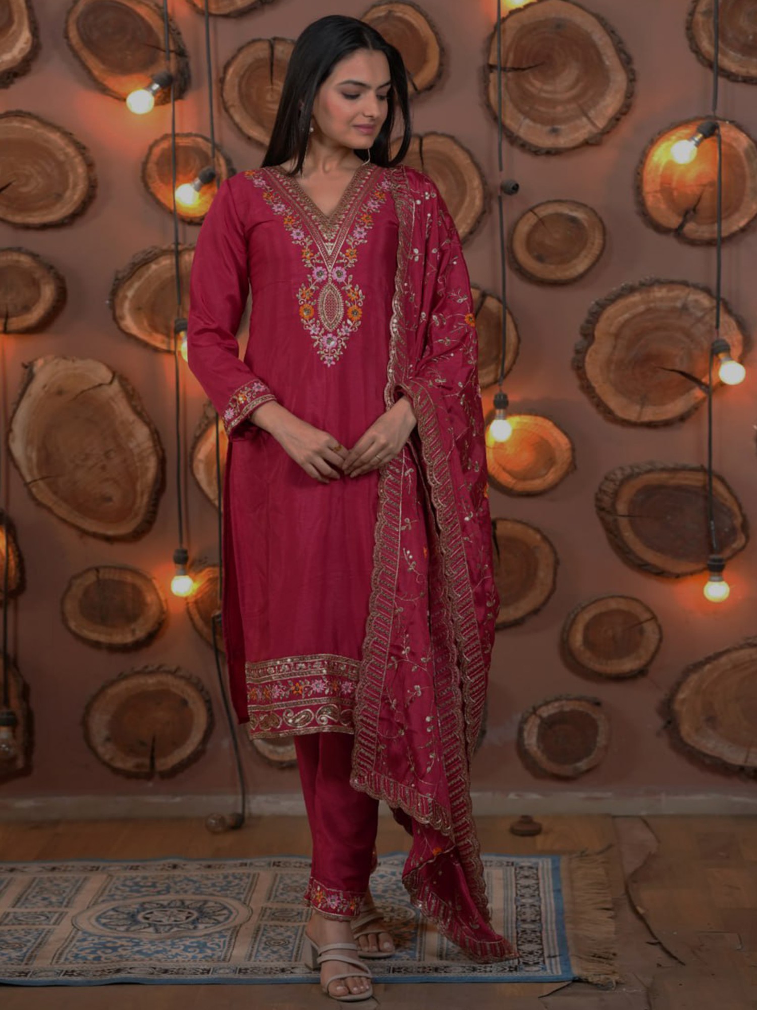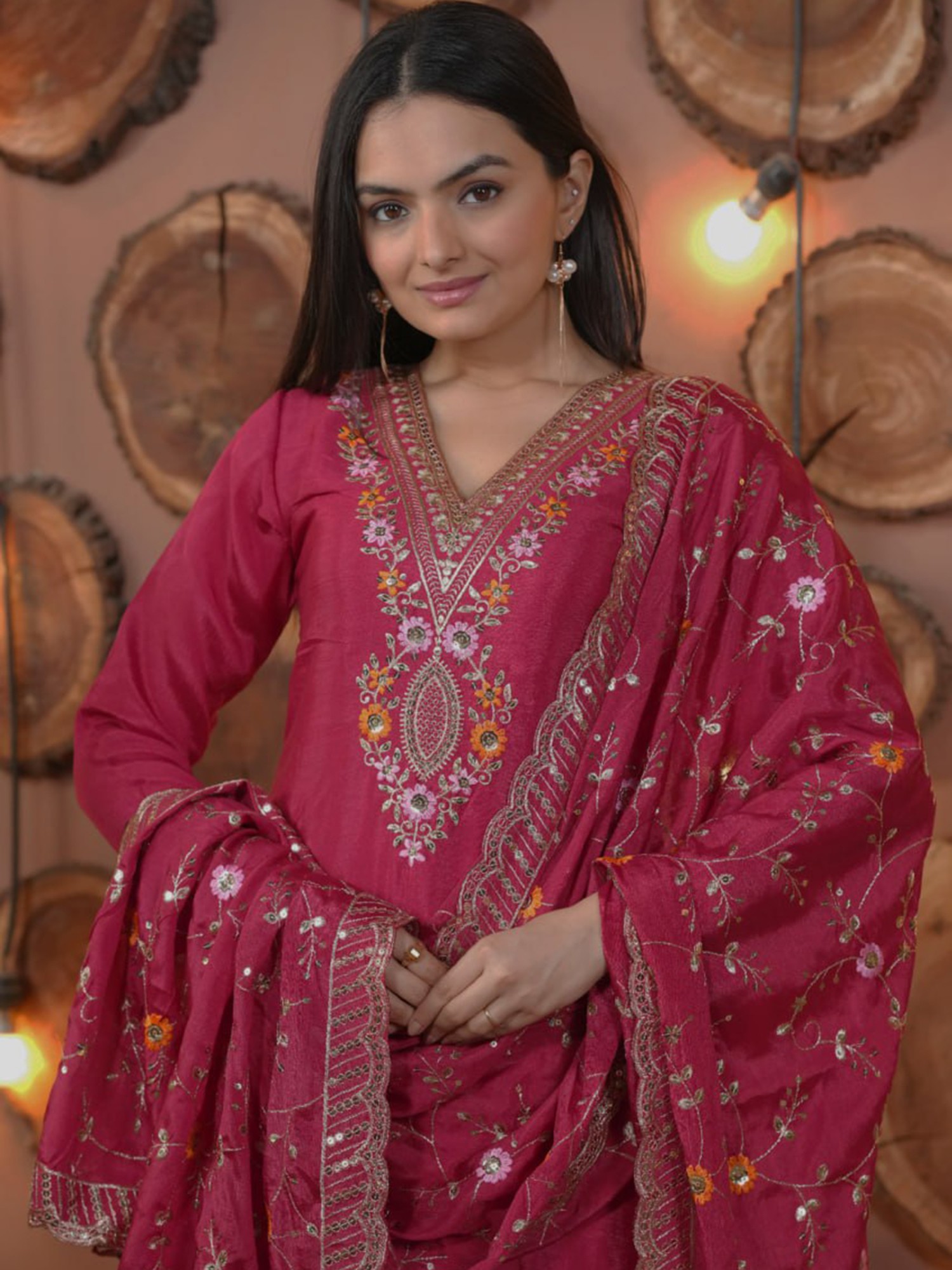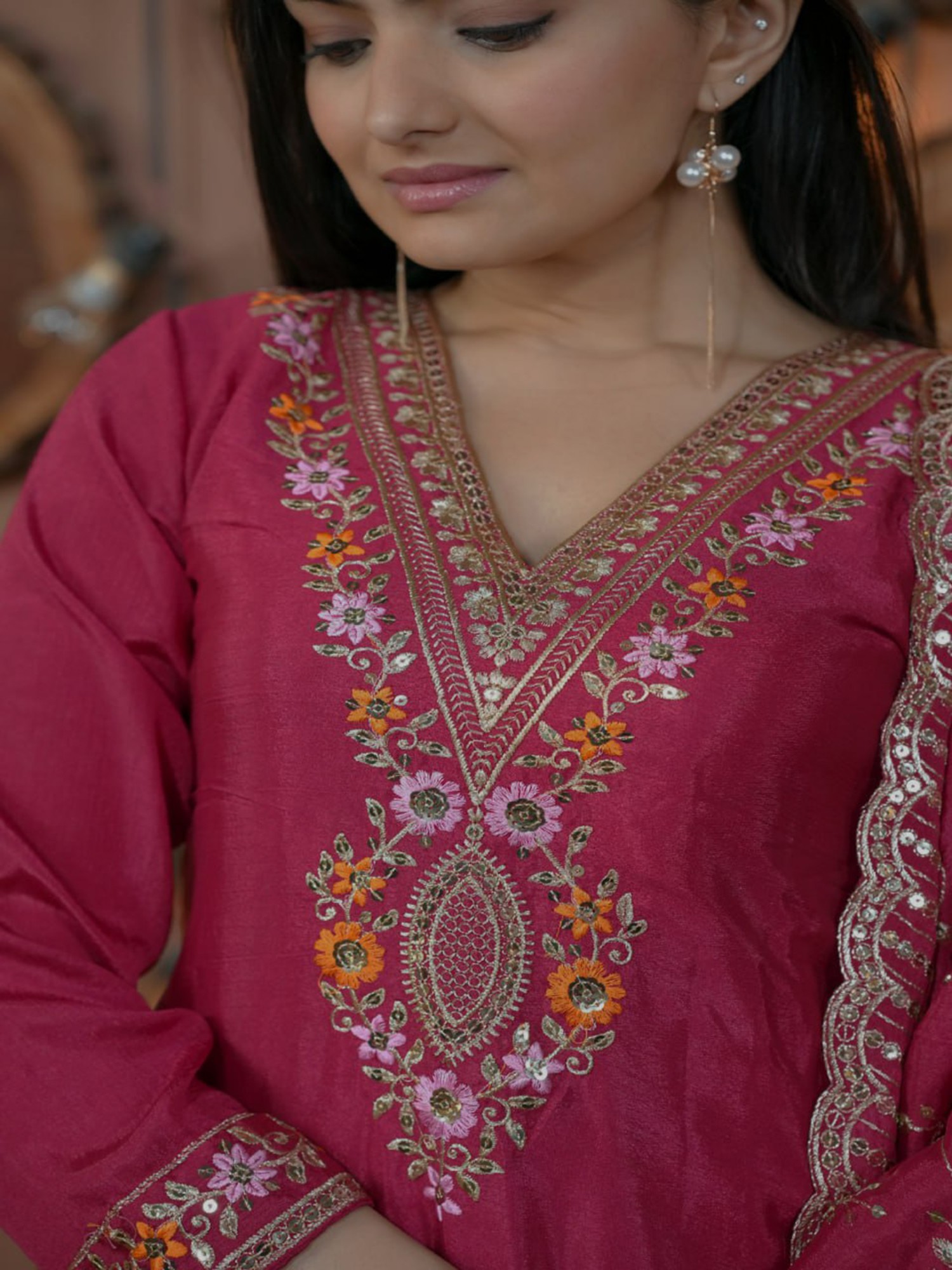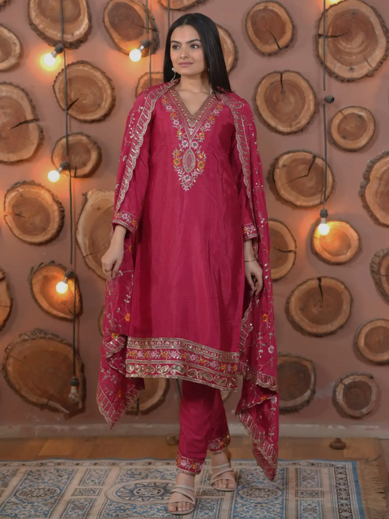 Elegant Chinon Kurta Pant Set With Dupatta Featuring Multi Sequin Embroidery Work For Party Wear Ethnic Outfit