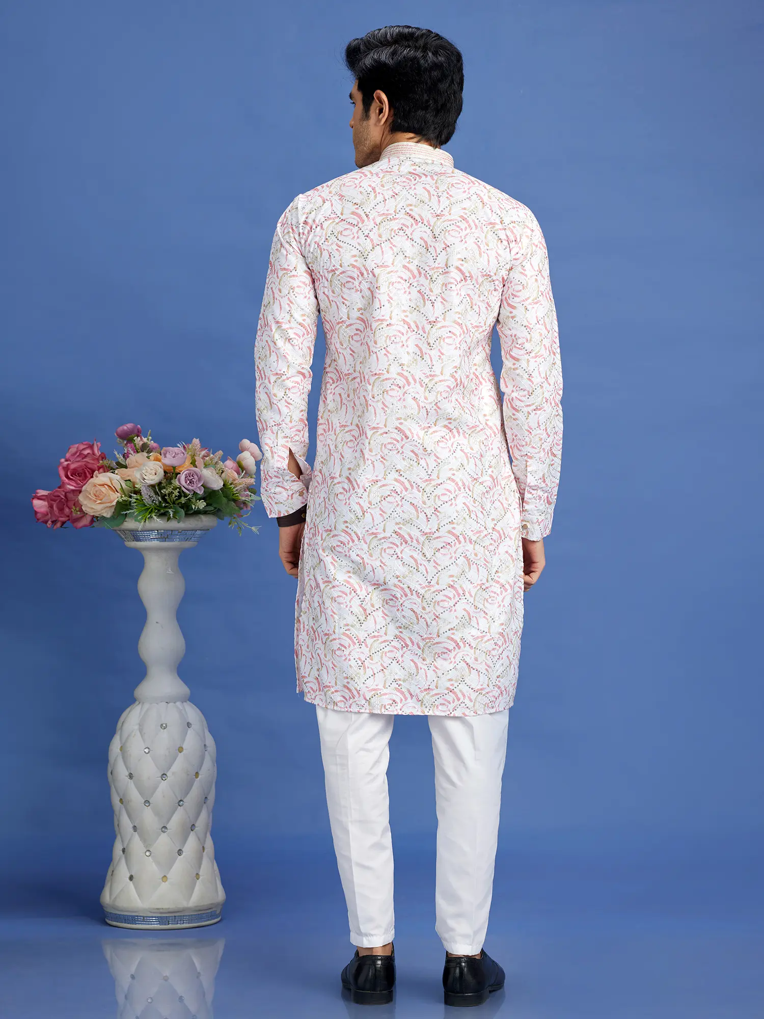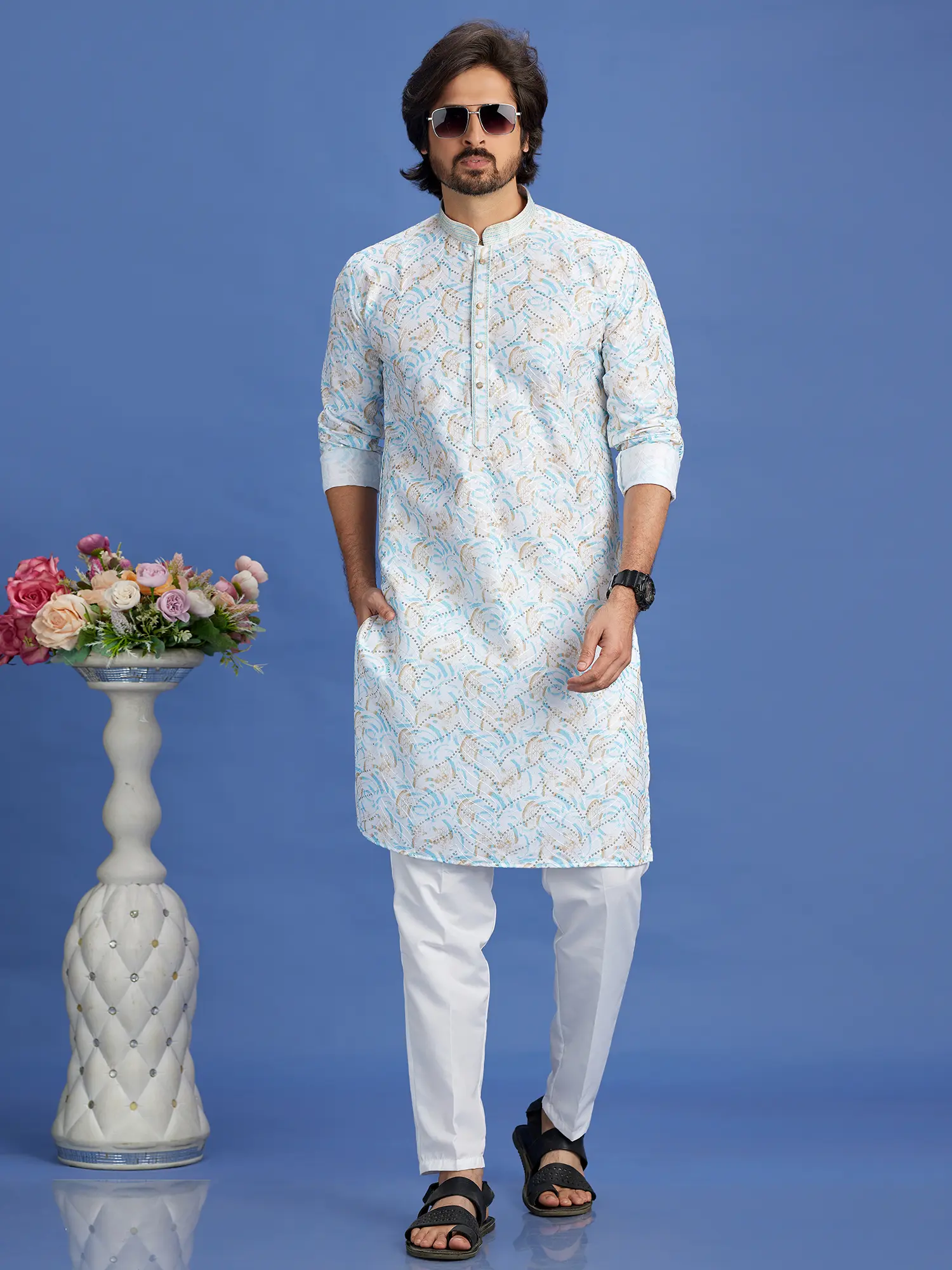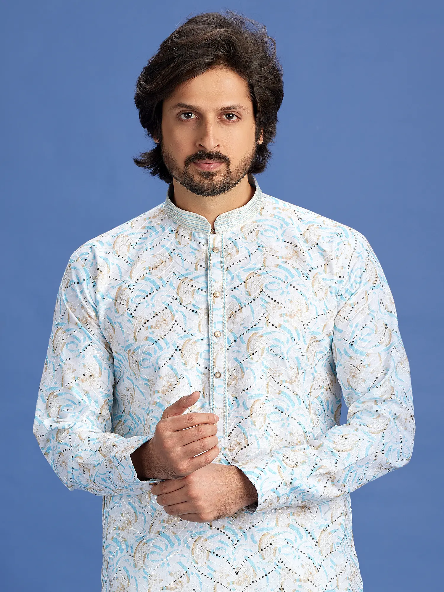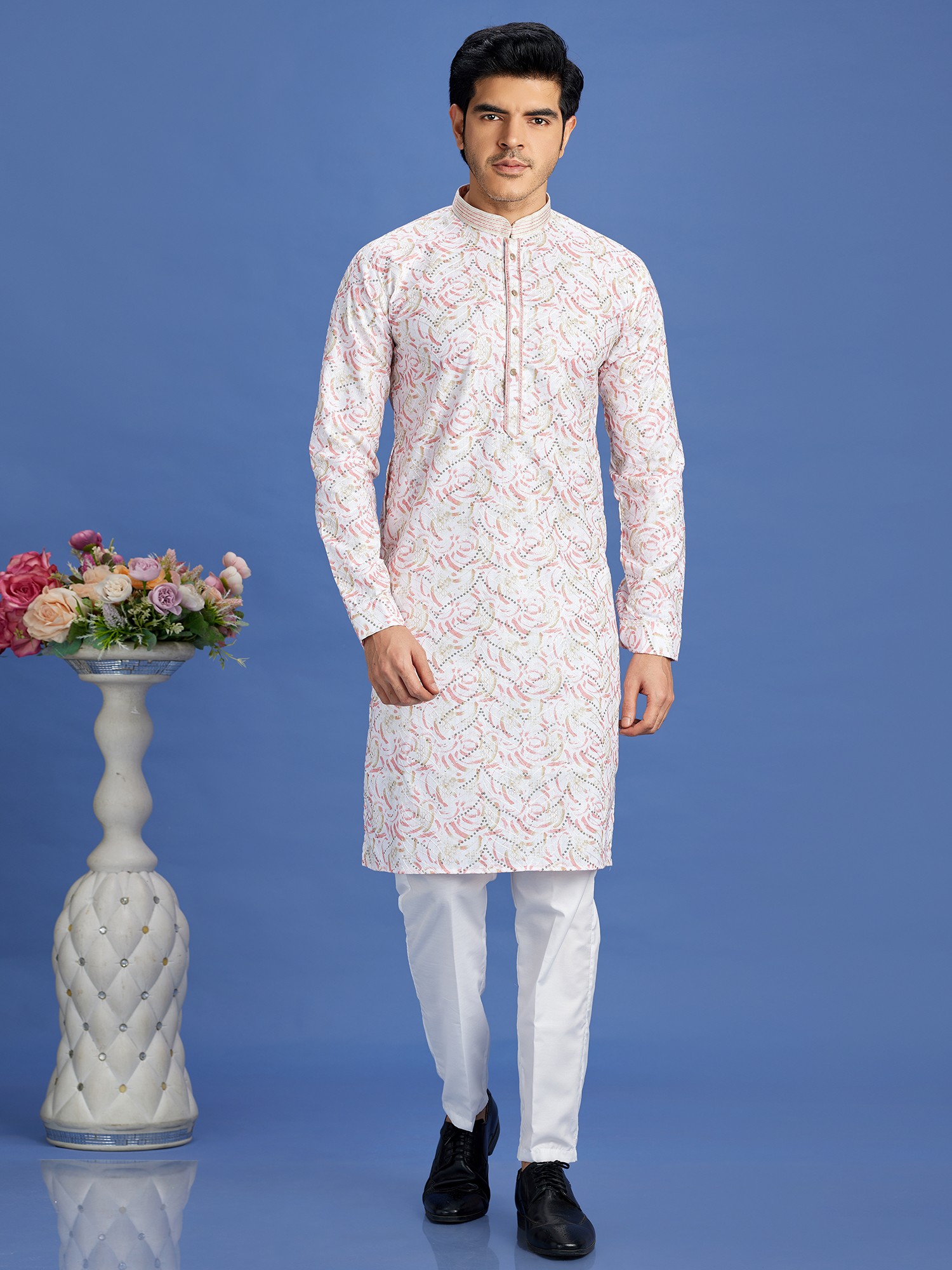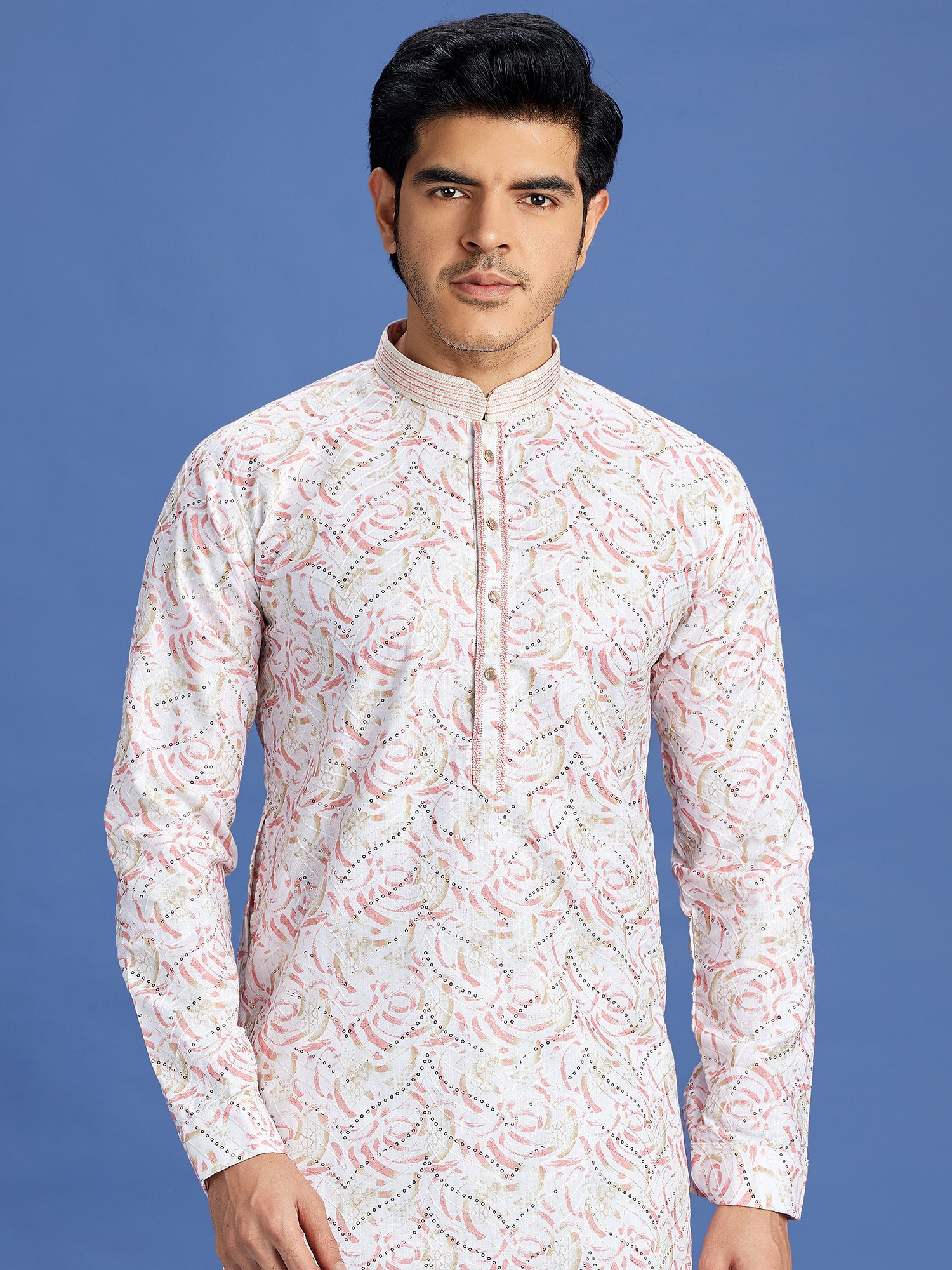 Star-White Kurta Pajama with Lukhnavi Chikan Embroidery by Hand