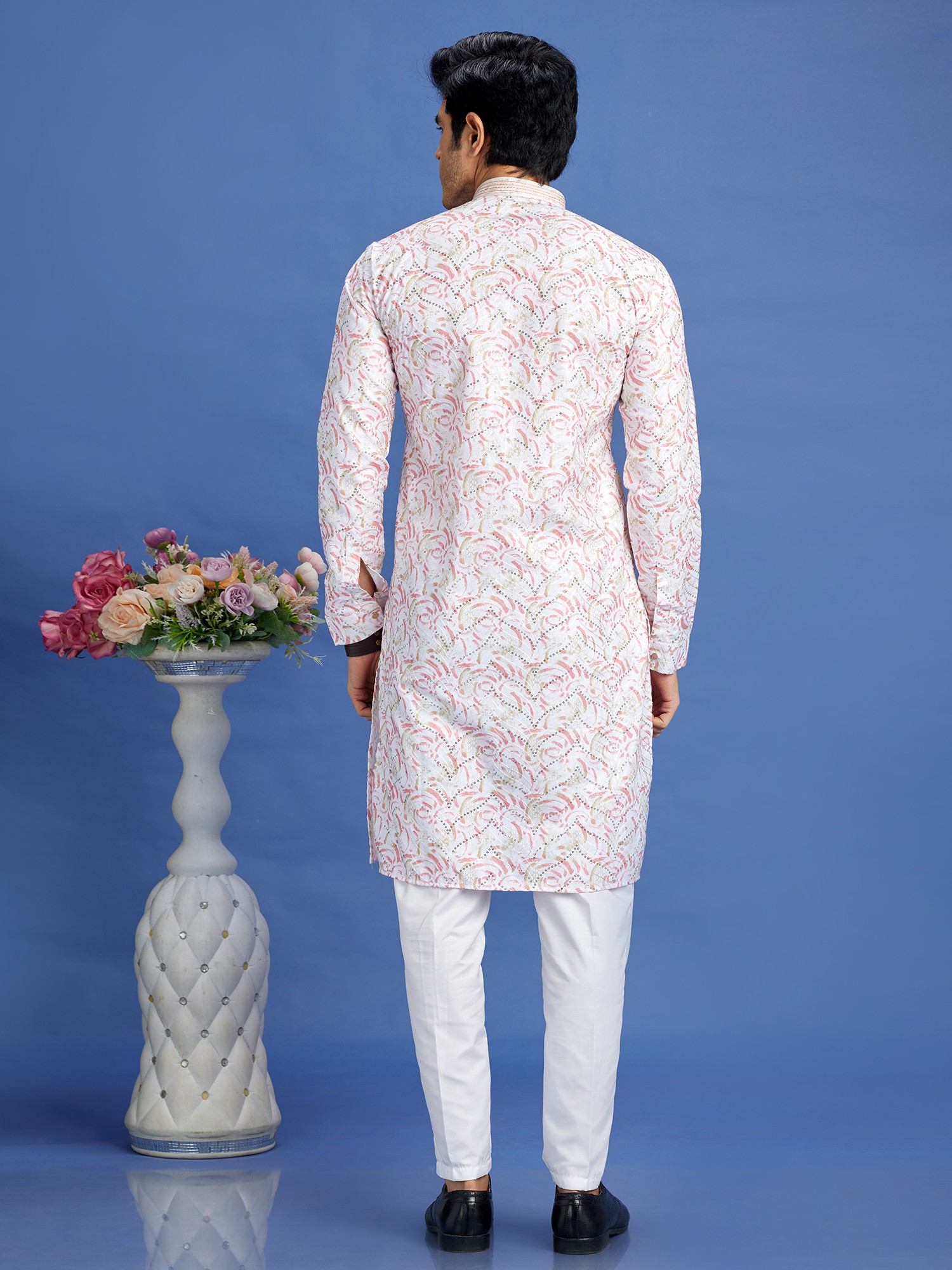 Wedding Kurta Pajama Set with All-Over Woven Floral Motifs in Self
