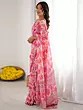 Elegant Designer Printed Mirror Cut Work Flowing Georgette Saree For Festive Party Ethnic Wear For Women