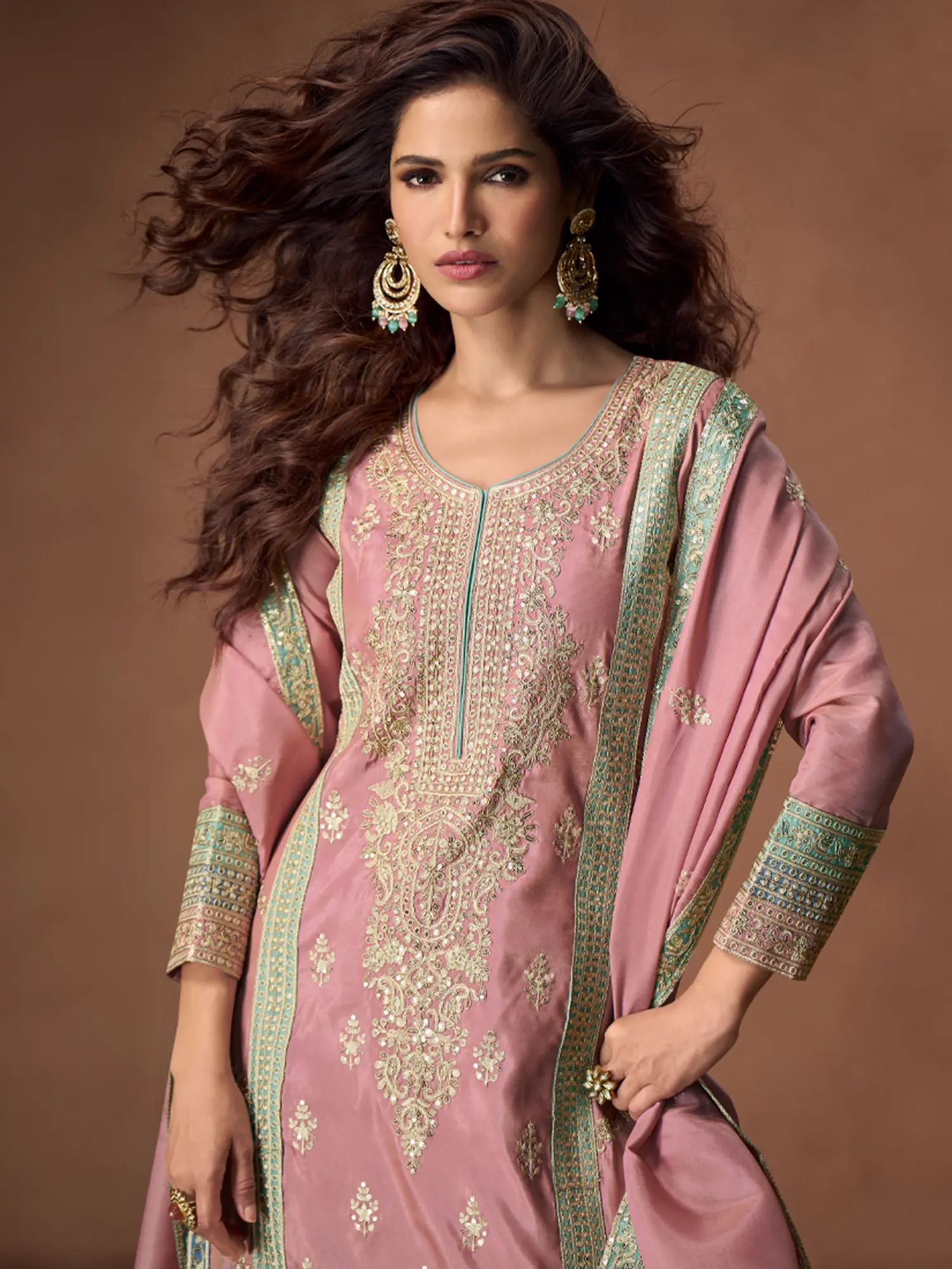 Embroidered Chinon Salwar Kameez Set with Organza Dupatta for Parties