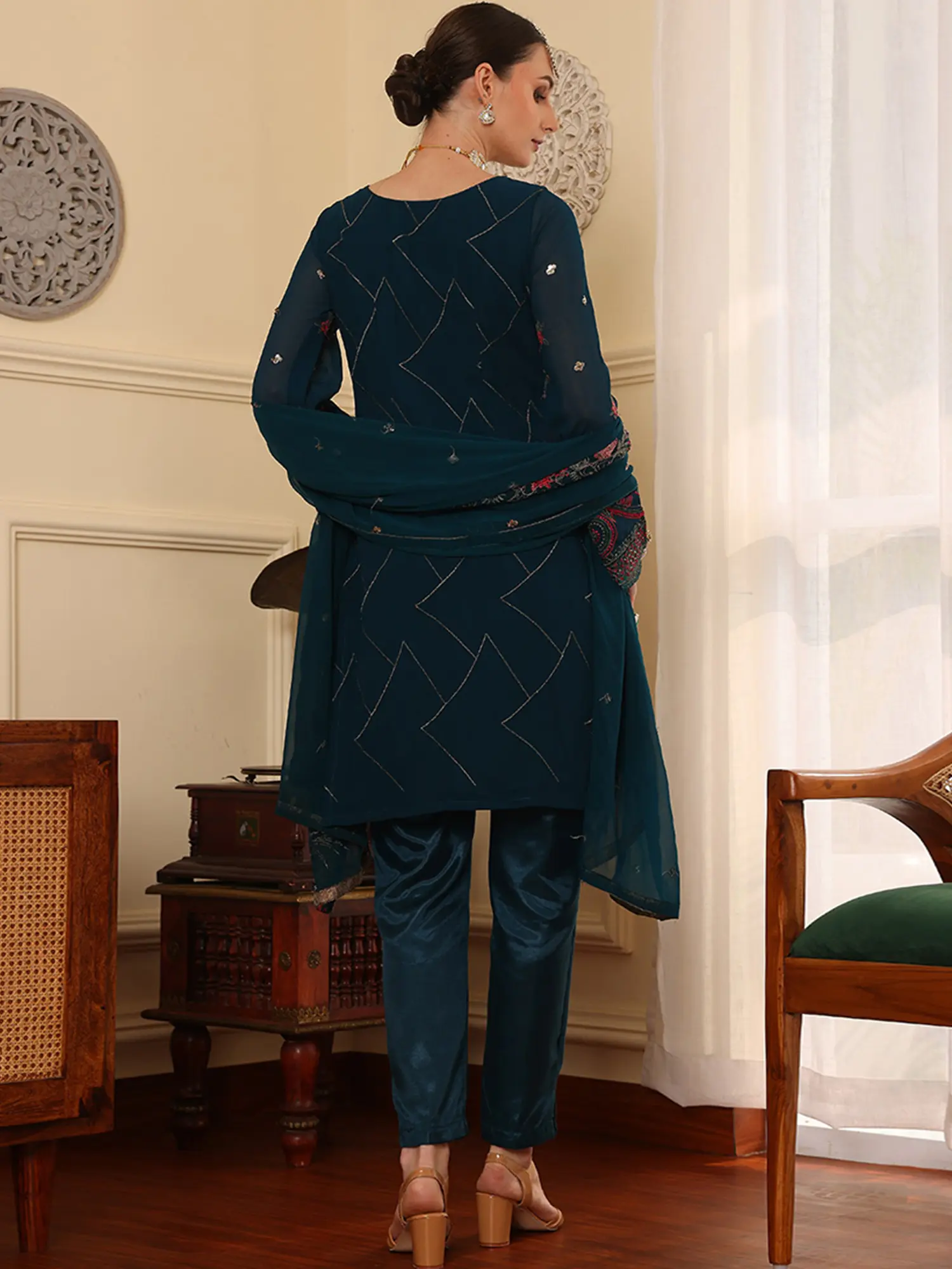 Green Palazzo Salwar Suit Chinon Ethnic Wear Designer Outfit For Festival Party Wedding Ceremony