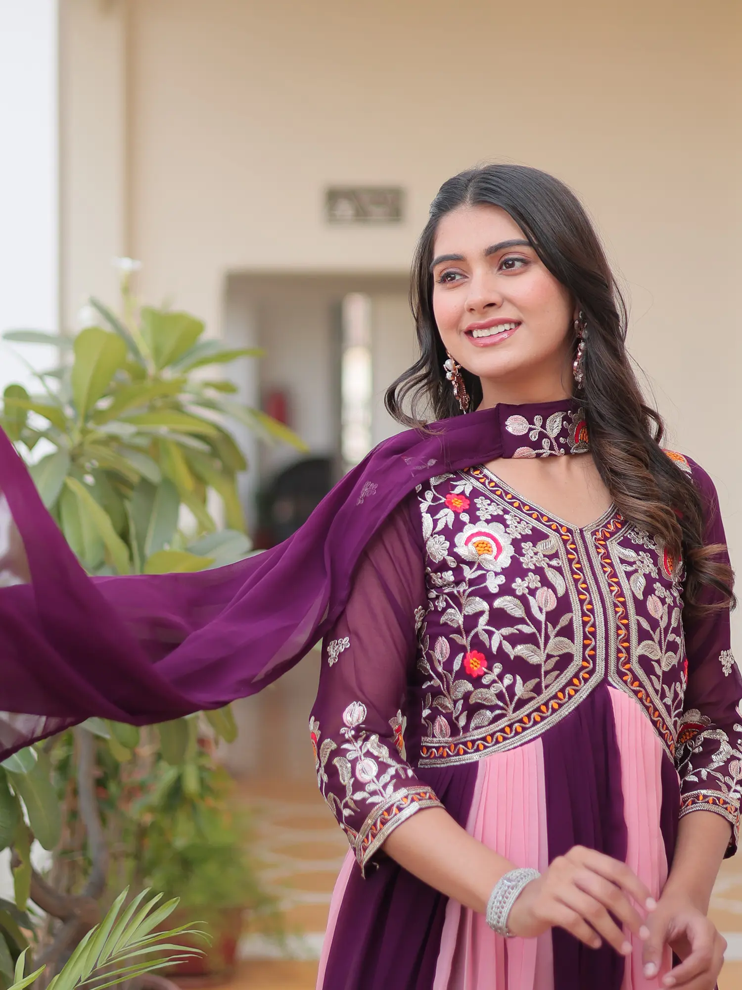 Heavy Embroidered Faux Georgette Designer Anarkali Gown Set with Dupatta