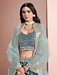 Zephyr-Green Designer Banarasi Lehenga Choli with Metallic-Thread Embroidery and Velvet Applique