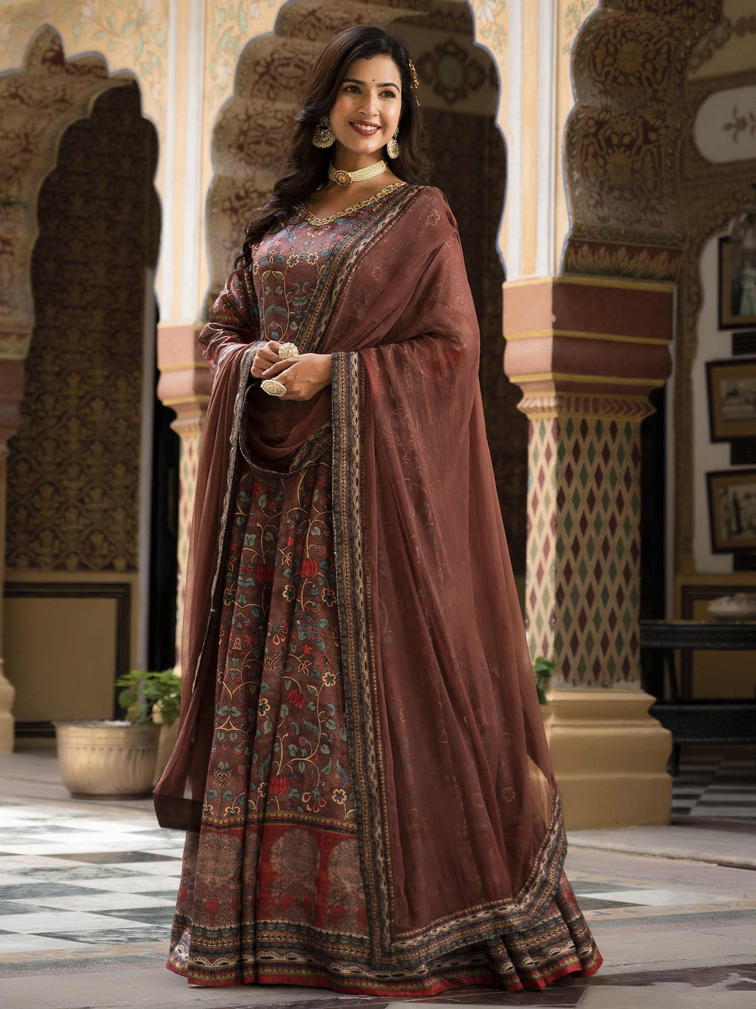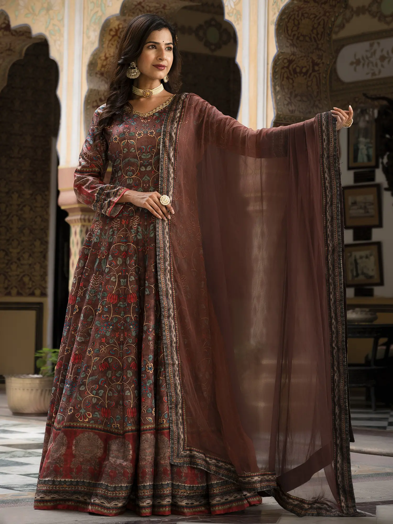 Elderberry Floral Aari Embroidered Salwar Kameez Suit with Dupatta