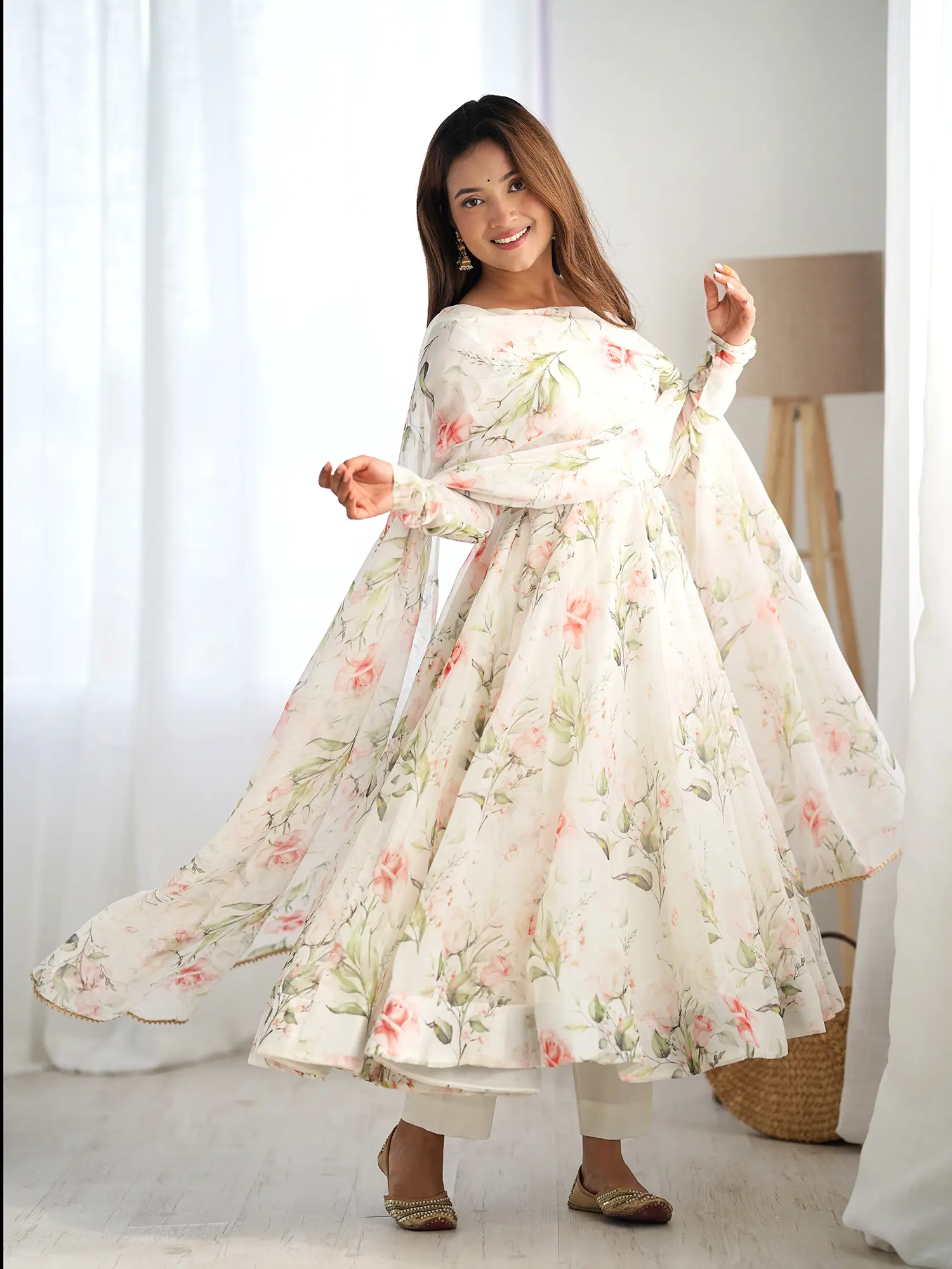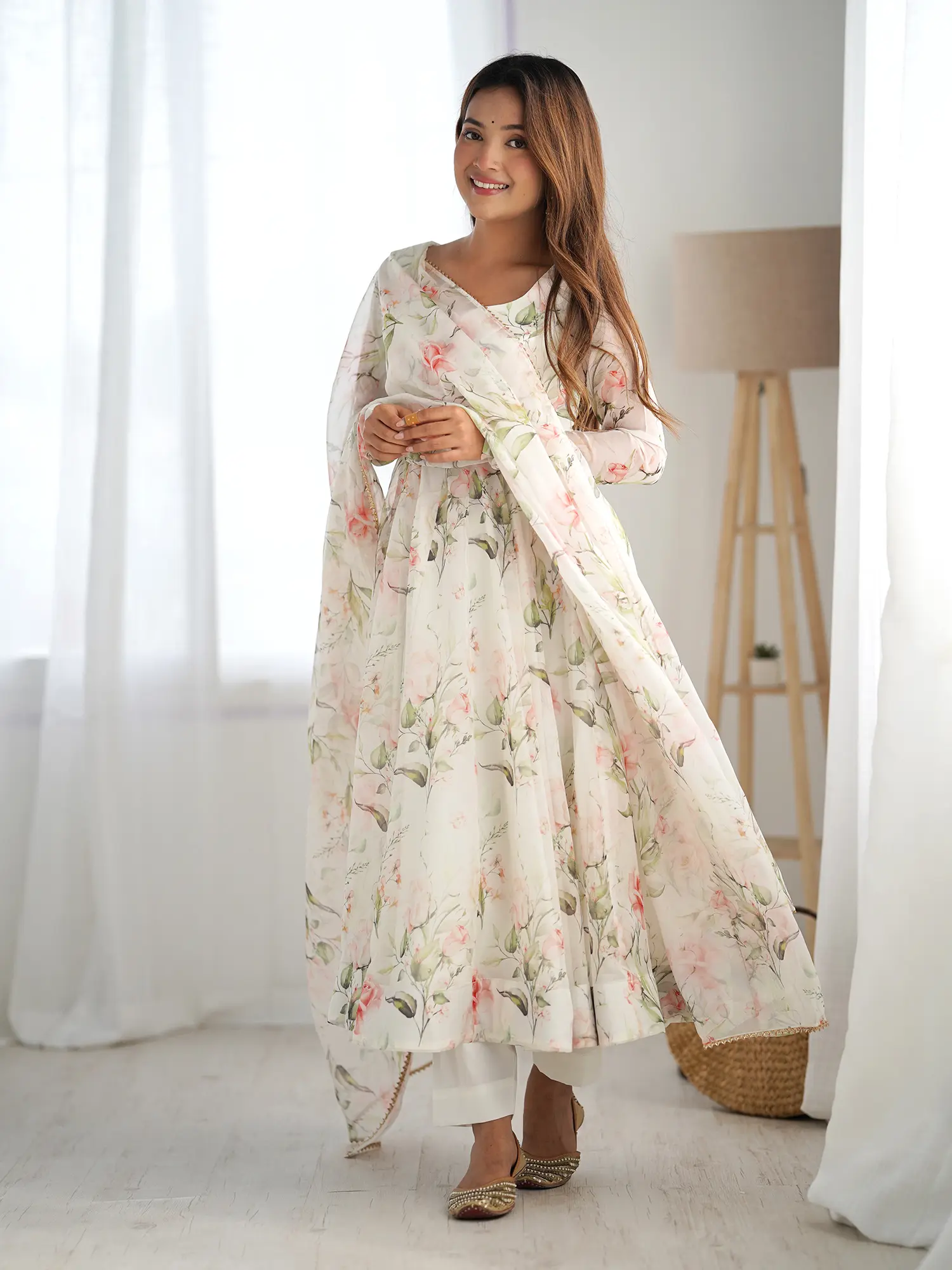 Brown Flared Churidar Salwar Kameez with Embroidered Sequins