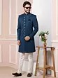 Aligarhi Pant Dupion Art Silk Paired With Jacquard Silk Indo Western Sherwani Set For Wedding Sangeet Reception Glam