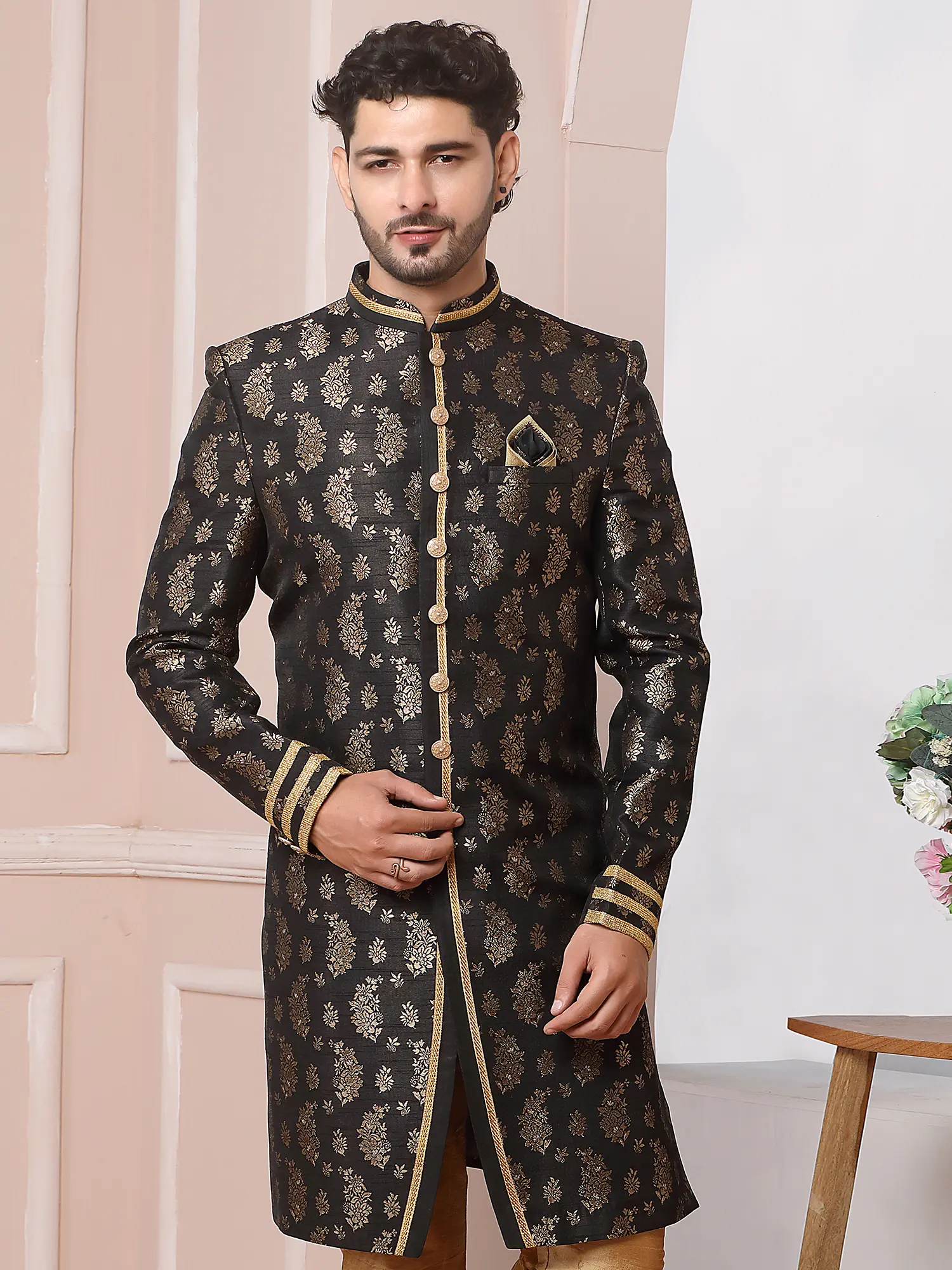 Step into a realm of sophisticated style with this exquisite ensemble, designed to command attention at your most cherished celebrations. You'll feel the undeniable presence of tradition and contemporary flair merging seamlessly, creating a look that is both timeless and powerfully modern. This is not merely attire; it is an affirmation of your discerning taste and your appreciation for sartorial excellence.