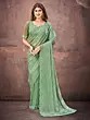 Elegant Designer Printed Mirror Cut Work Flowing Georgette Saree For Festive Party Ethnic Wear For Women