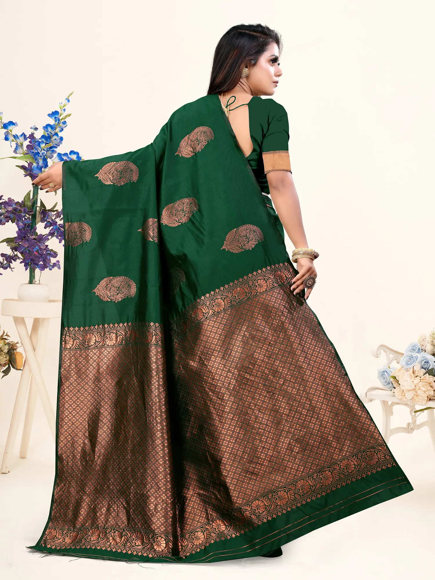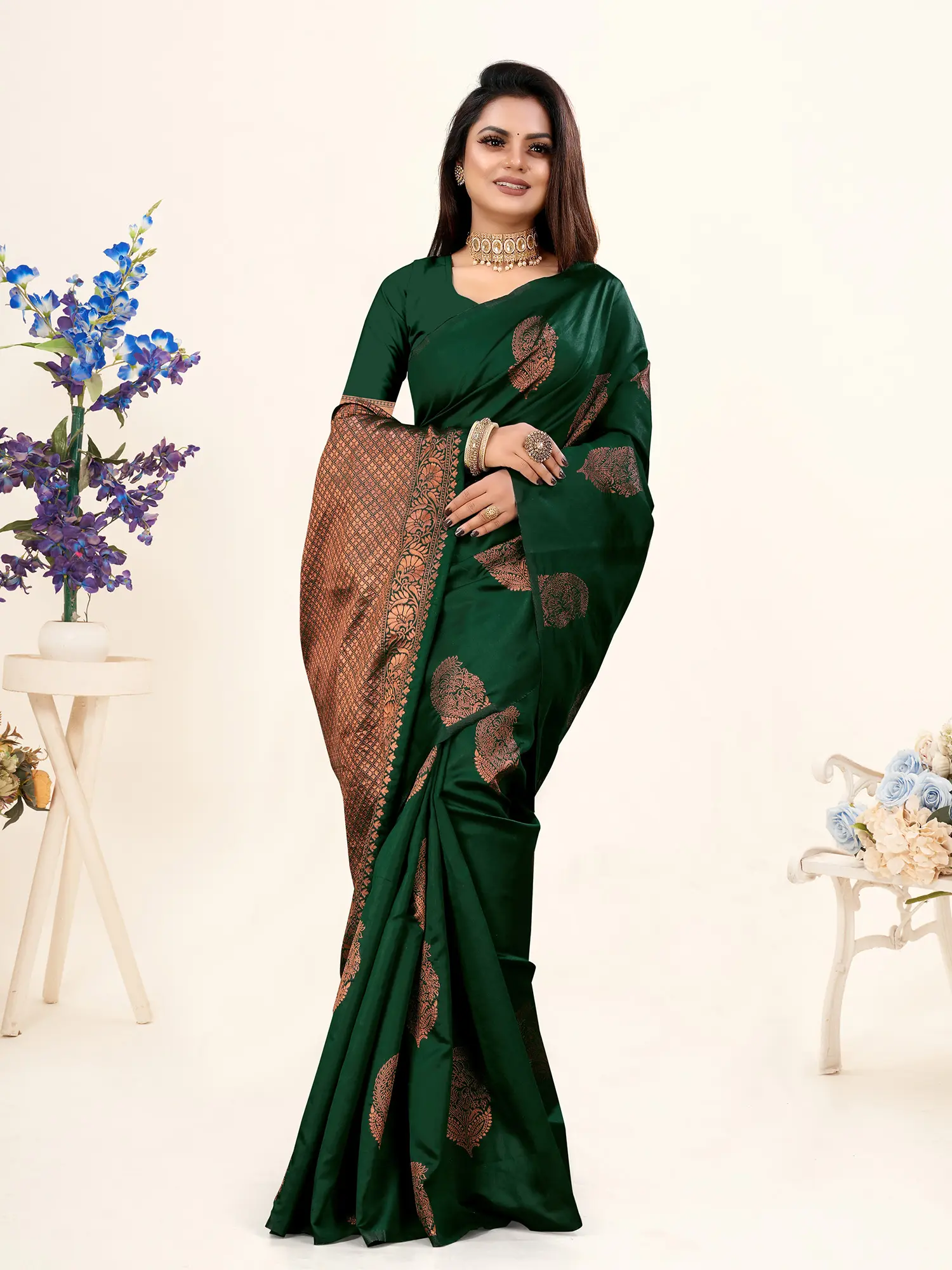 Pure Chiffon Green-Glow Banarasi Saree with Unstitched Blouse | Handloom Zari Woven