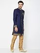 Men's Navy Velvet Sherwani Set with Gold Handwork Embroidery
