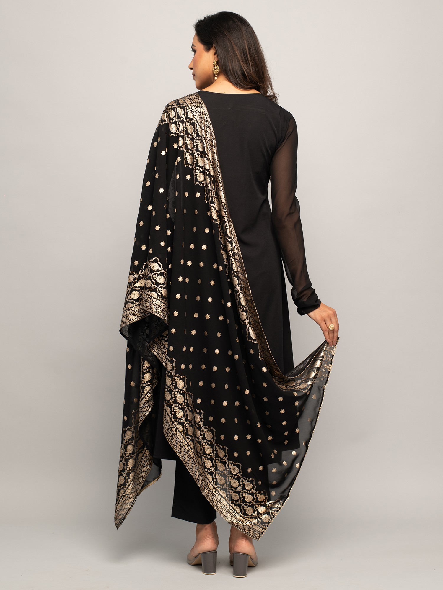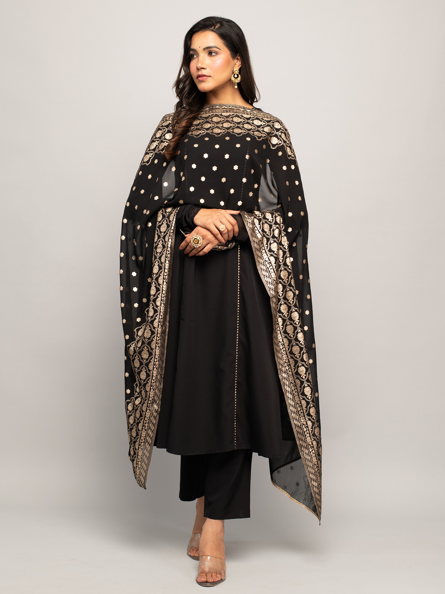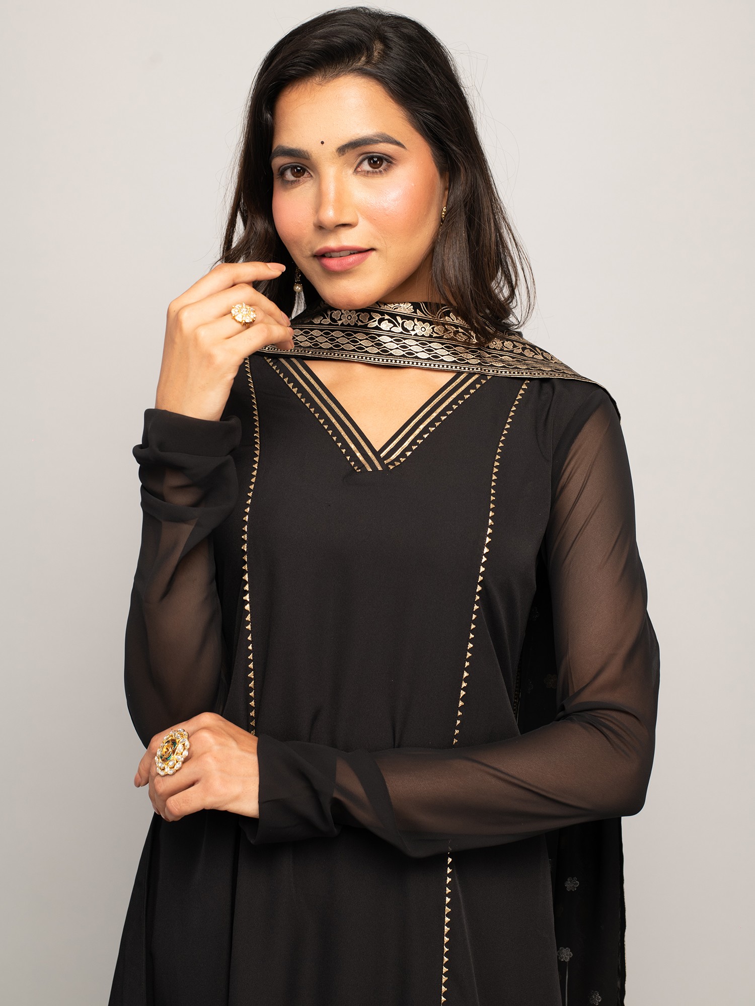 Gota Work Viscose Designer Party Wear Kurta Set With Bandhani Print Silk Blend Dupatta