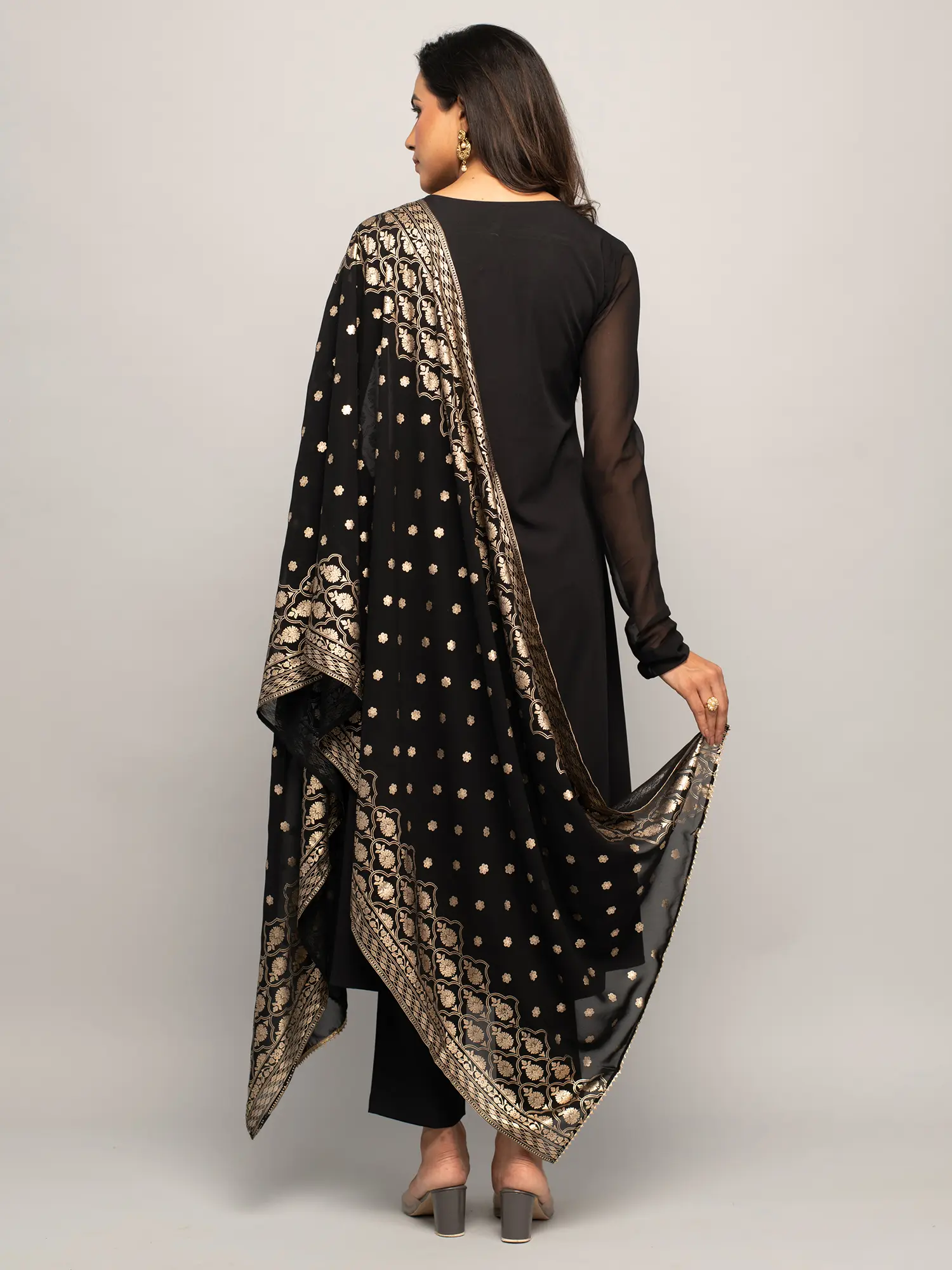Multicolor Elegant Soft Faux Georgette Anarkali Suit With Matching Dupatta
