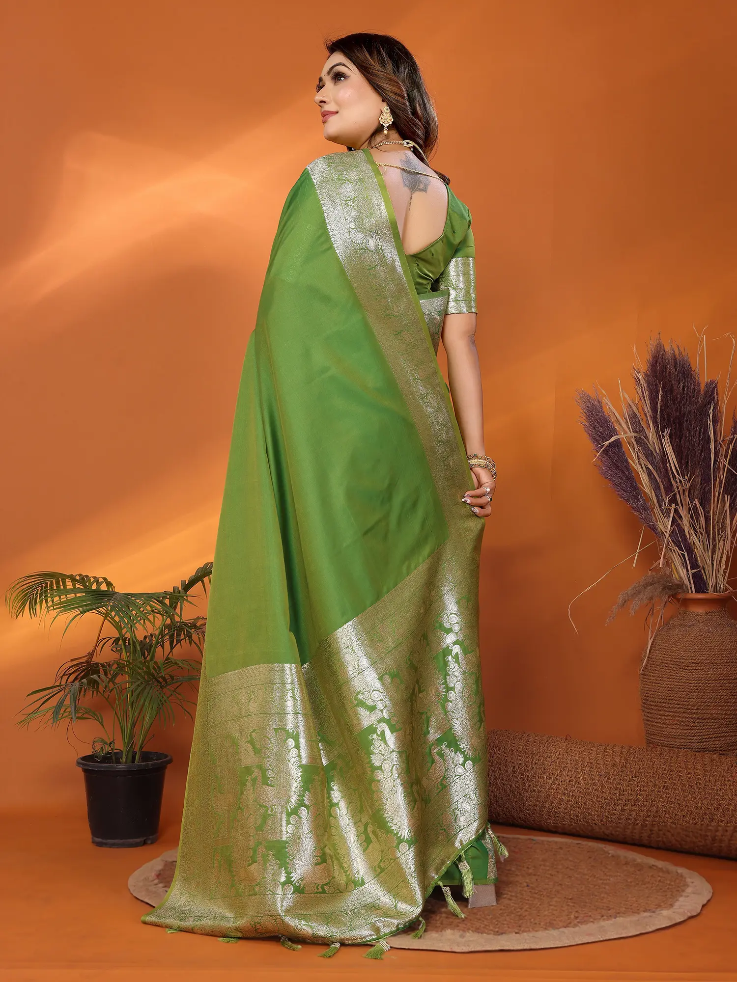 Traditional Banarasi Saree with Woven Bootis and Zari Weave on Pallu