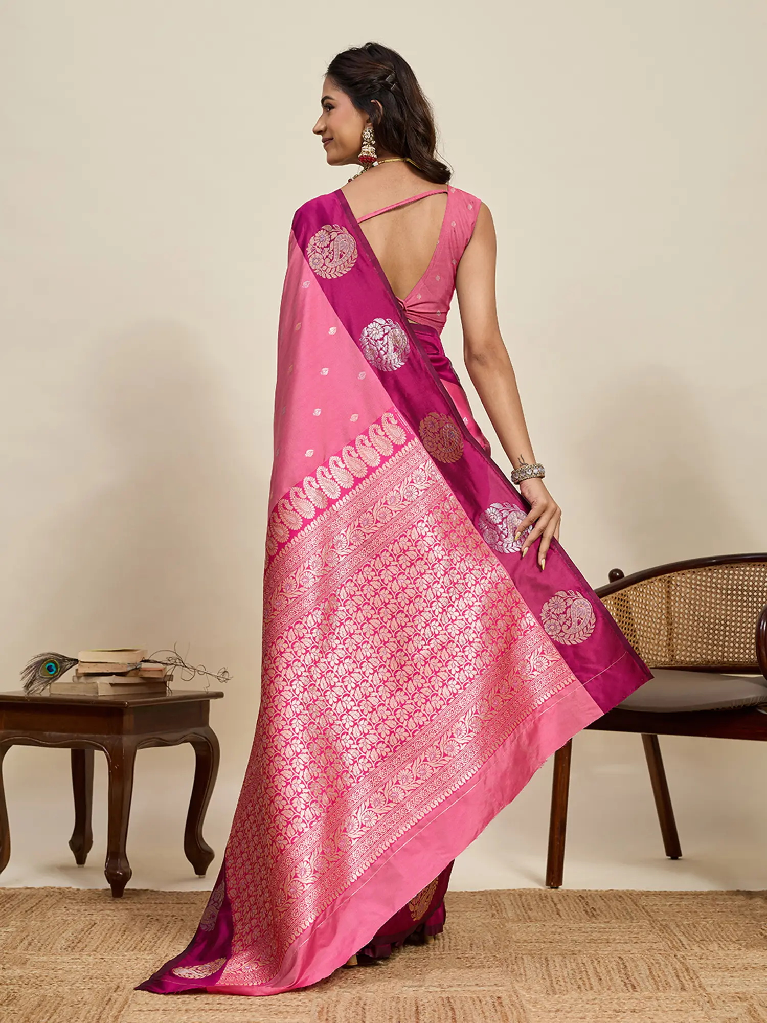 Alluring Soft Lichi Silk Saree Rich Pallu Jacquard Work Pink Green Dual Tone Ethnic Festive Party Wear For Women