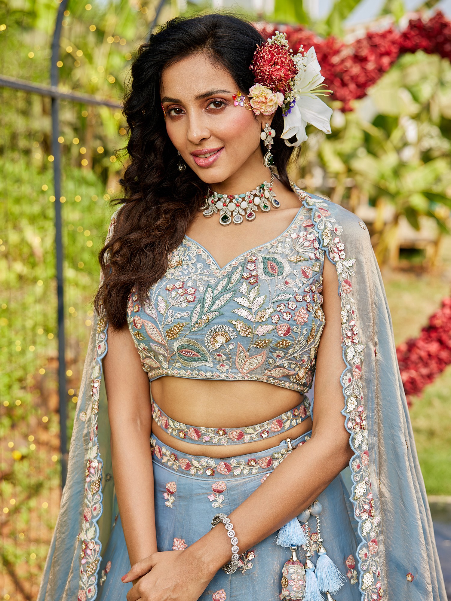 Designer Georgette Lehenga Choli With Heavy Beads Embroidery Bridal Wedding And Engagement Wear Set