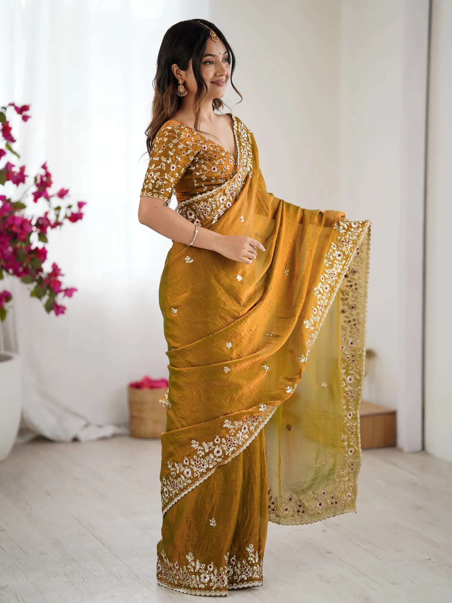 Elegant Traditional Chiffon Saree with Sequin Embellishments