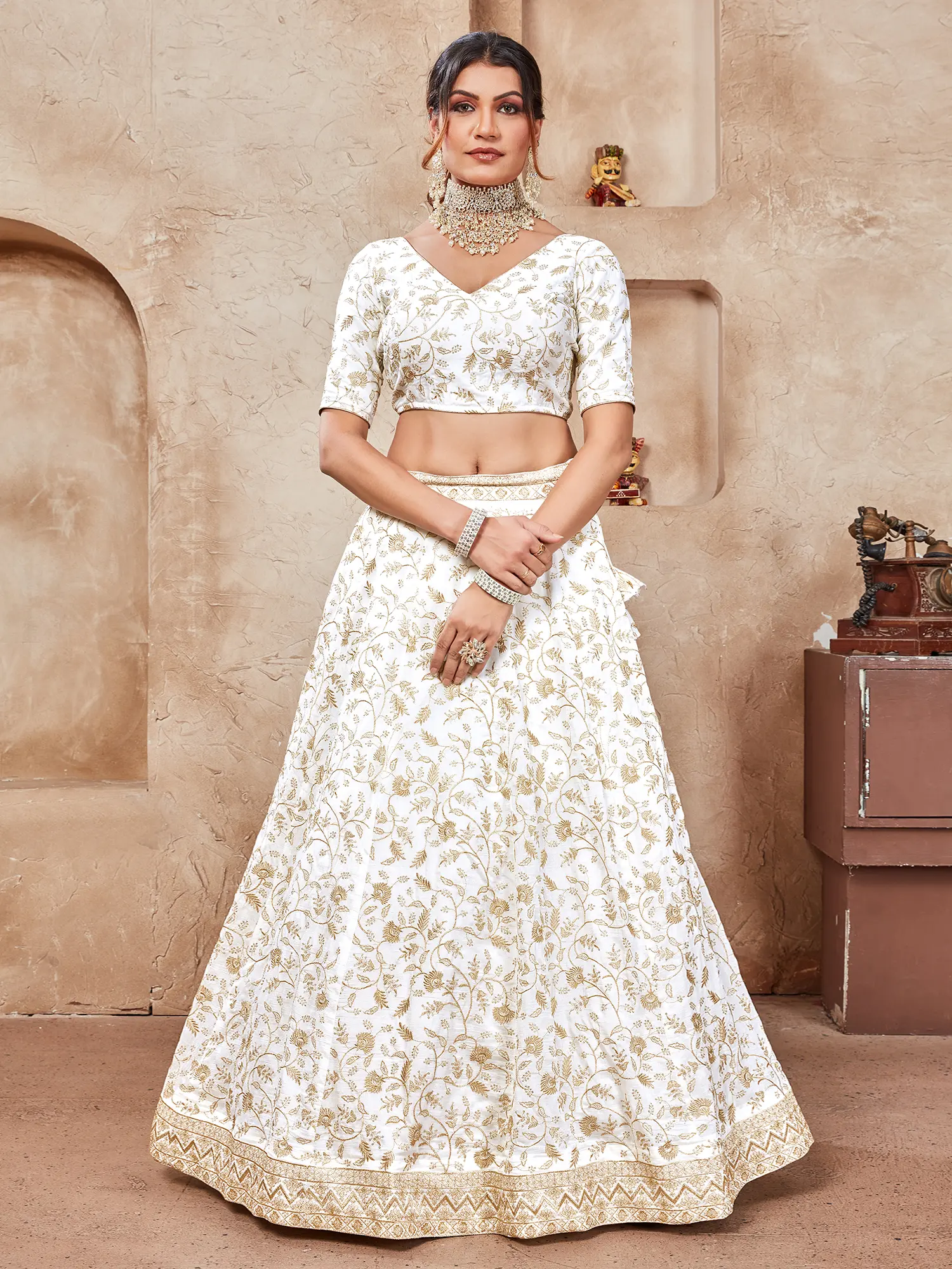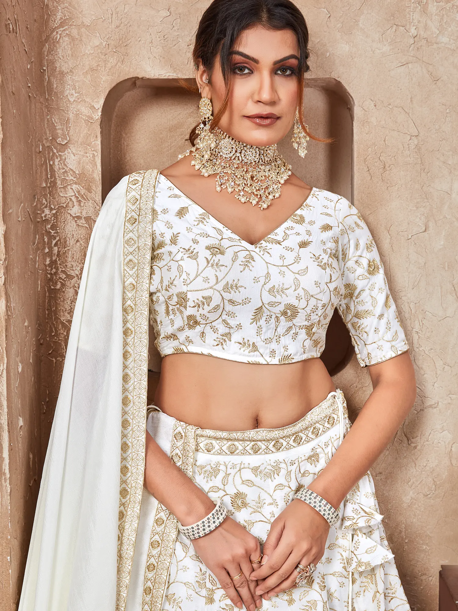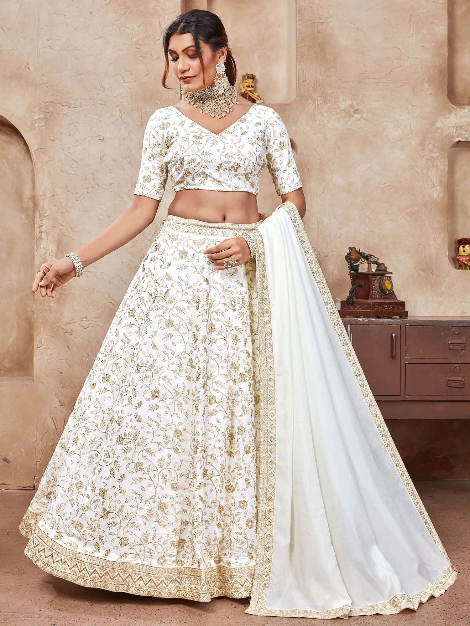 Teal Taffeta Silk Beautiful Floral Zari Embroidery Lehenga Choli with Beige Sheer Dupatta