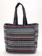 Shopper Bag with Printed Multicolor Paisleys and Zipper Closure