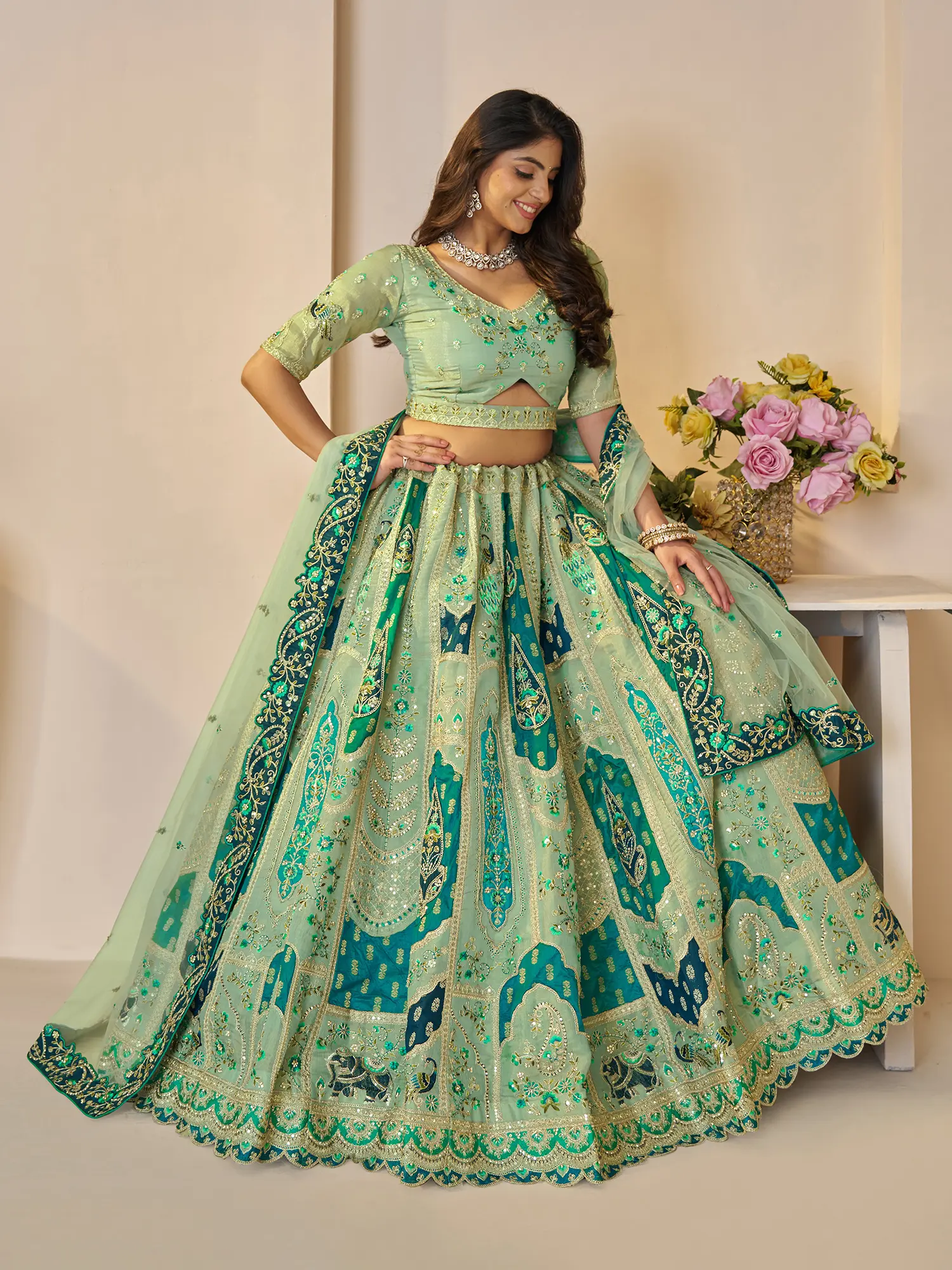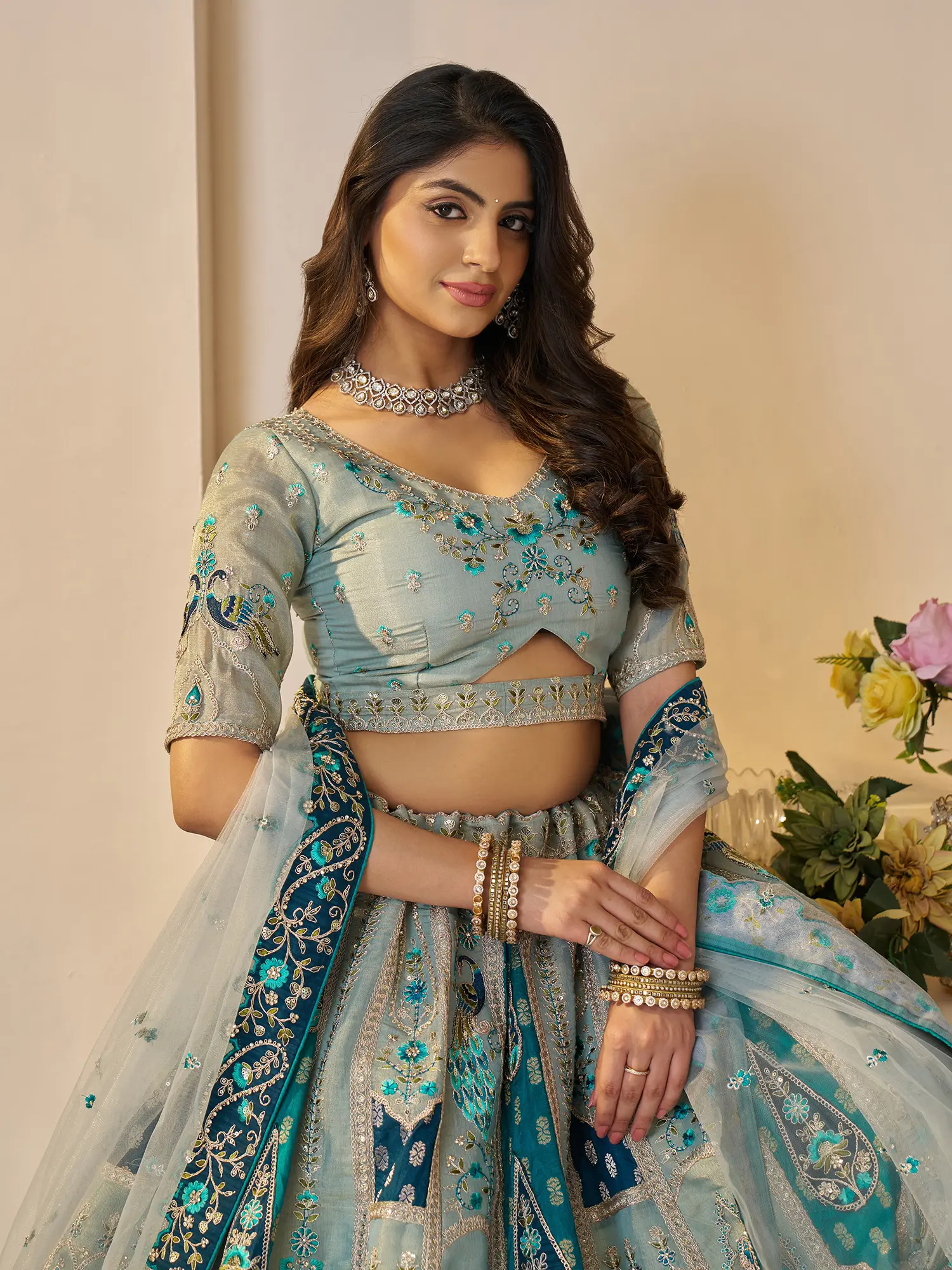 Floral Embroidery And Zarkan Work Pure Fendy Silk Lehenga Choli With Pure Organza Dupatta
