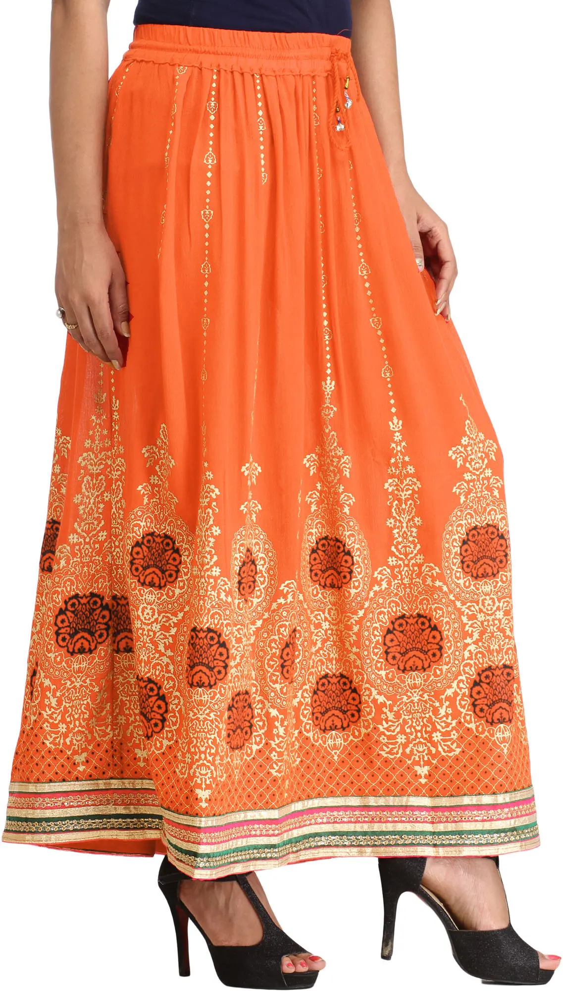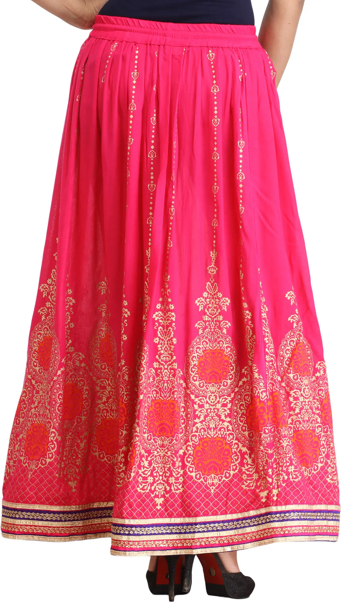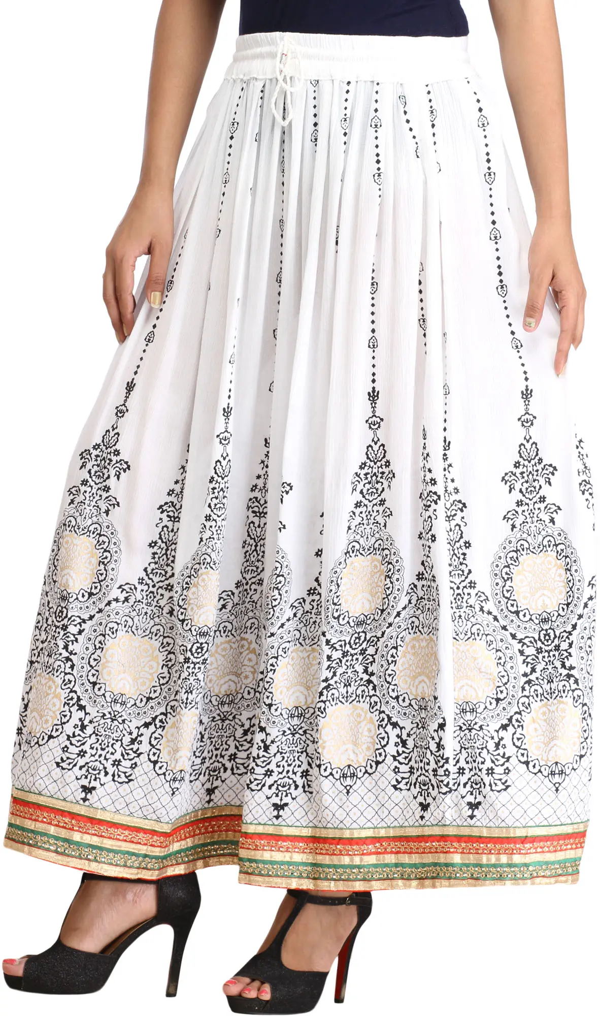 This Embellished Long Skirt with Golden Print and Embroidered Patch Border offers a unique approach to style and unparalleled comfort. The golden print adds a touch of opulence and glamour to the skirt, elevating its aesthetic appeal. Additionally, the embroidered patch border adds intricate detailing and texture, enhancing its visual interest.