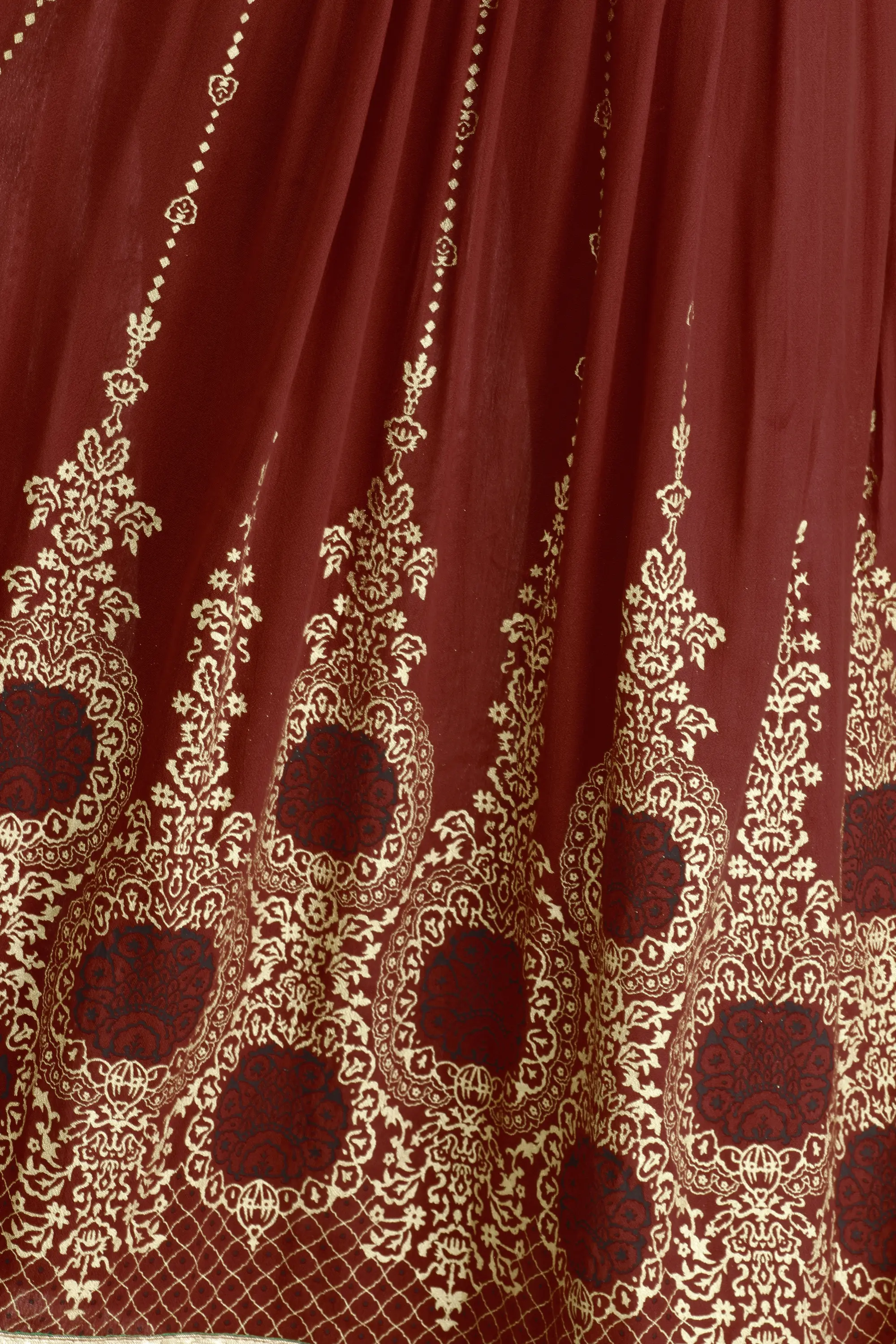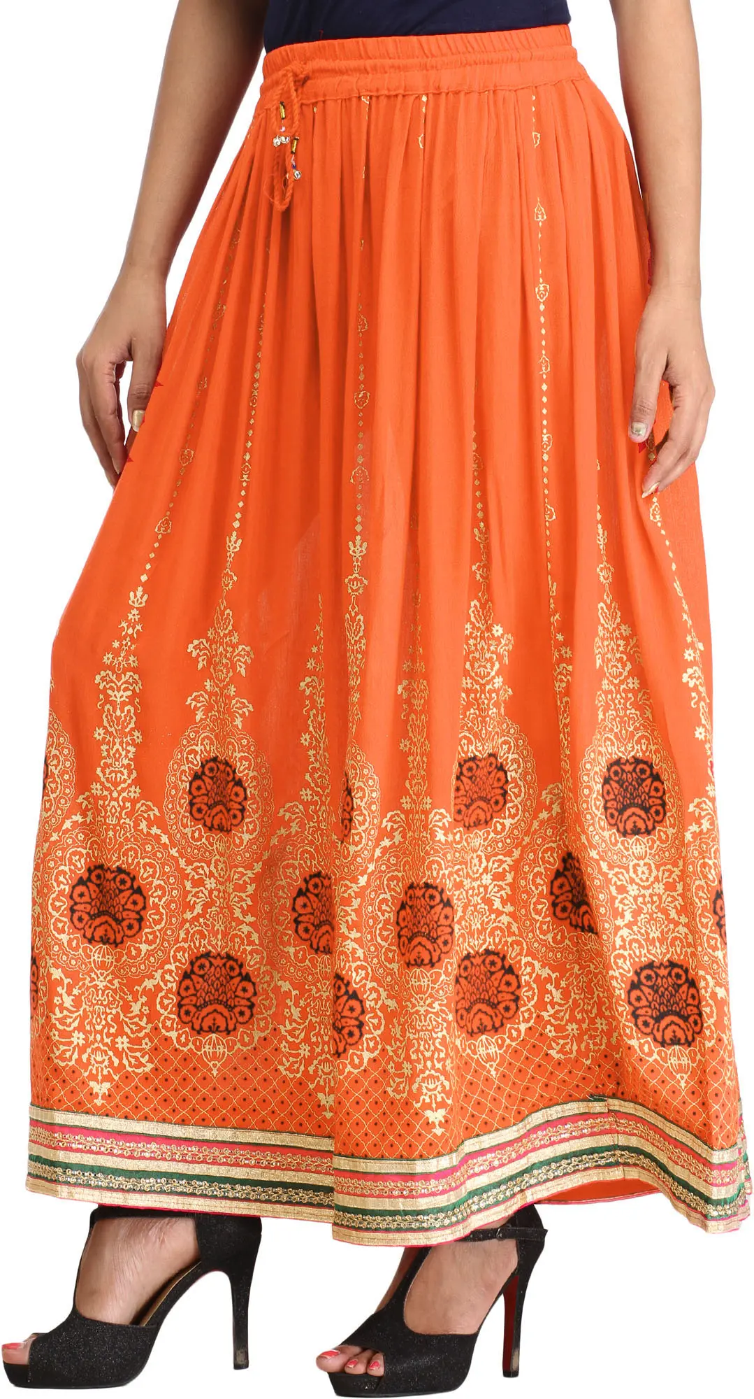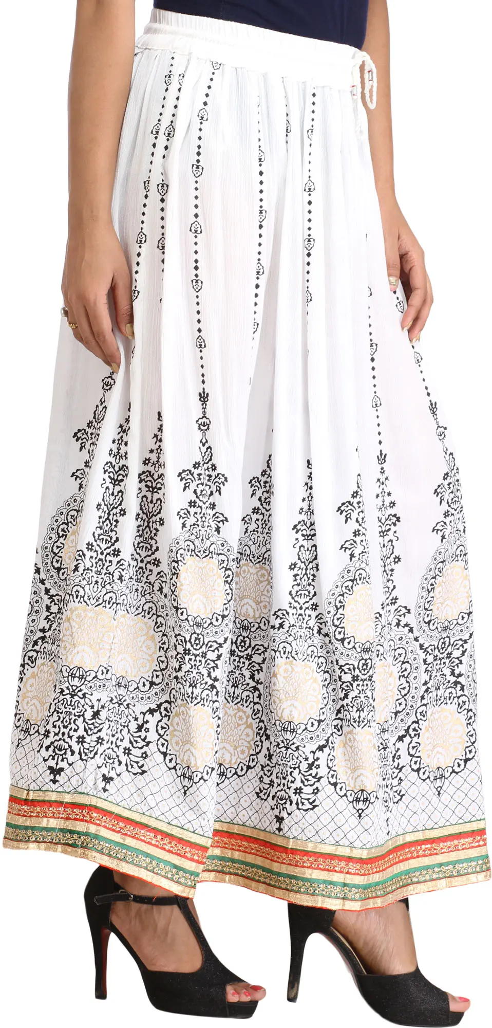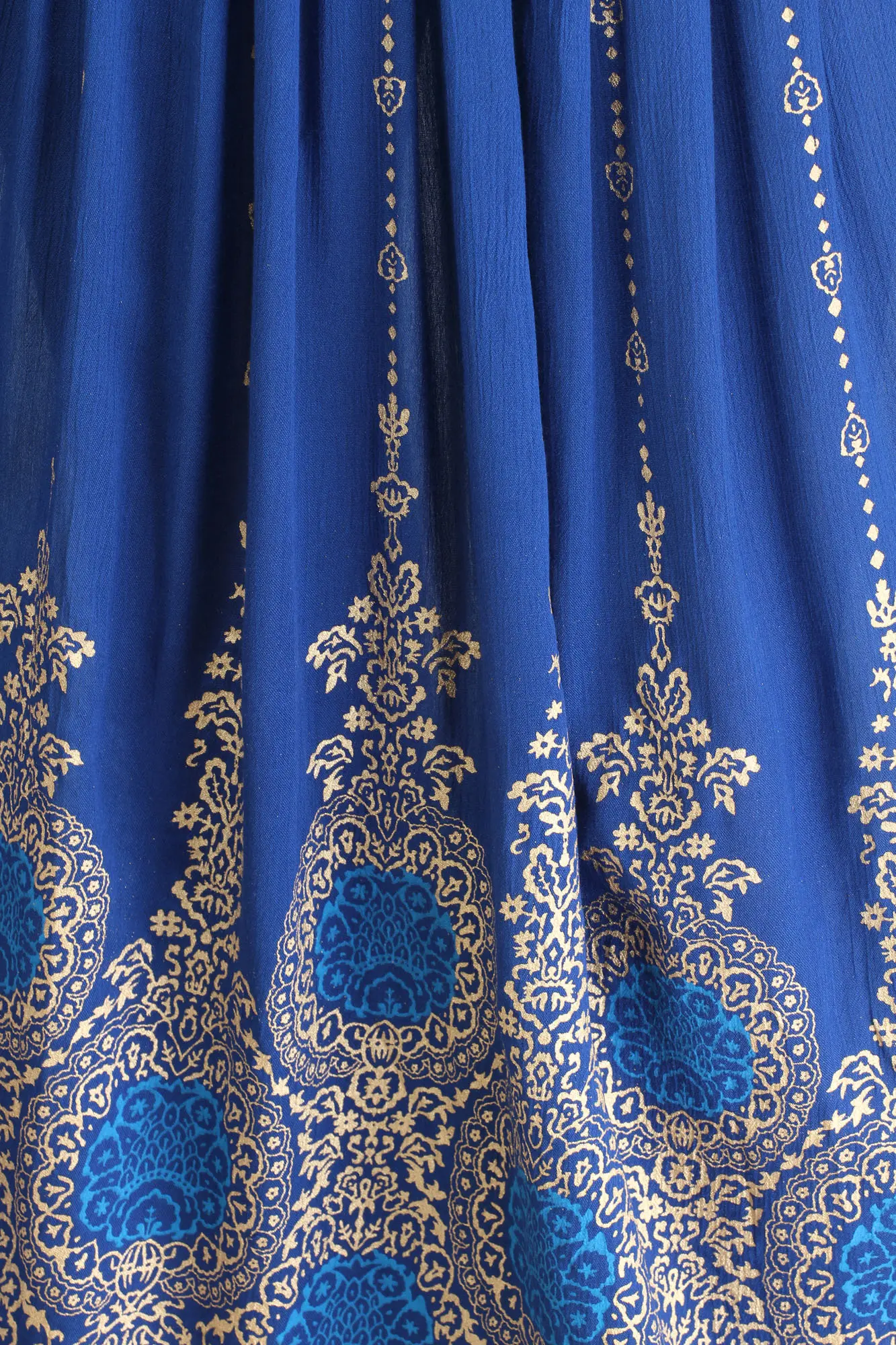 This Embellished Long Skirt with Golden Print and Embroidered Patch Border offers a unique approach to style and unparalleled comfort. The golden print adds a touch of opulence and glamour to the skirt, elevating its aesthetic appeal. Additionally, the embroidered patch border adds intricate detailing and texture, enhancing its visual interest.