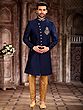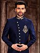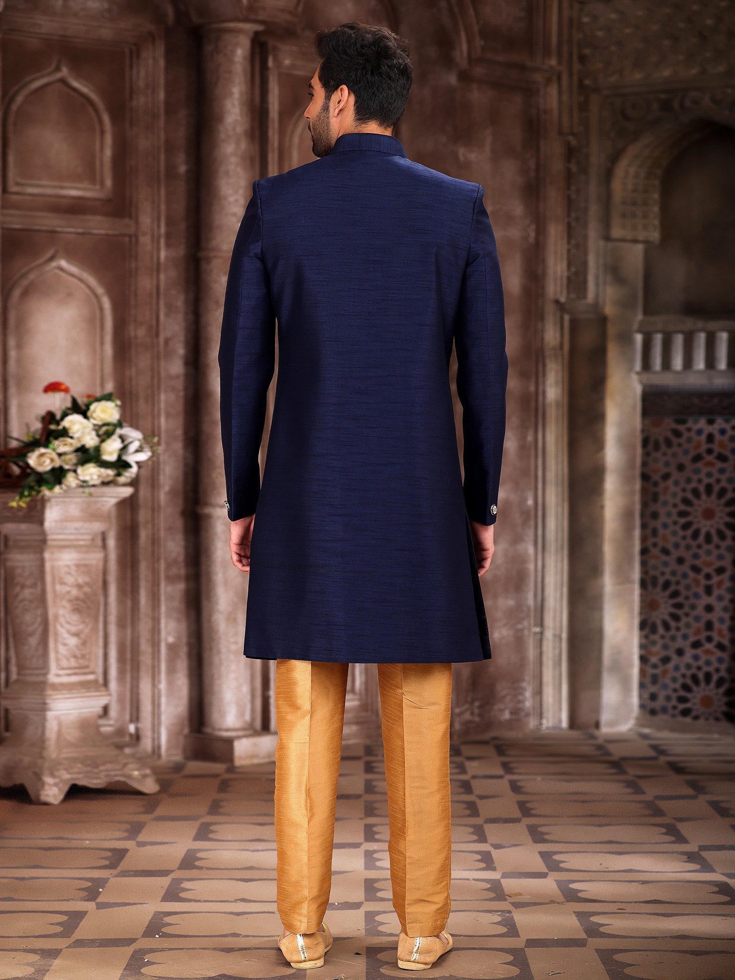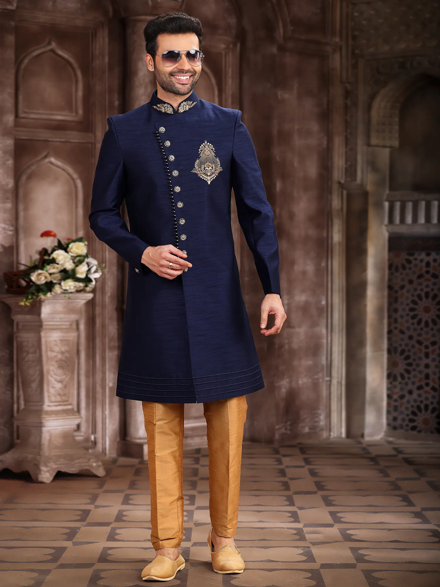Embroidered Art Silk Sherwani With Aligarhi Pant With Indo Western Style For Wedding Reception Groom Wear