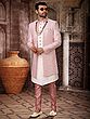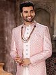 Luxurious Printed Thread Work Art Silk Indo Jacket Set With Aligarhi Pant For Wedding Groom Wear