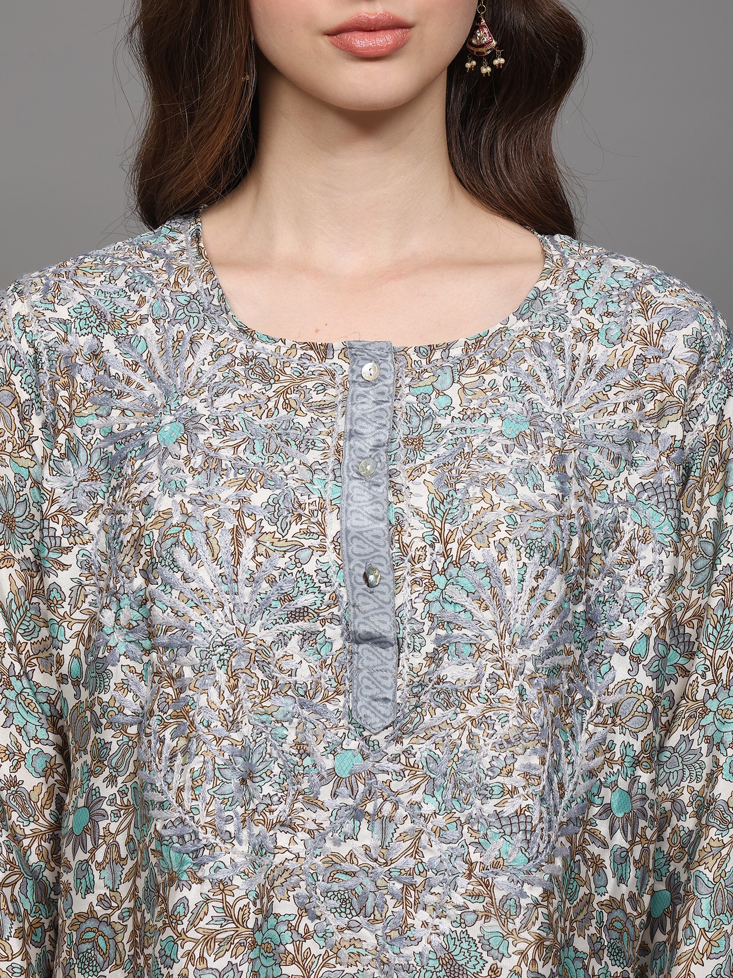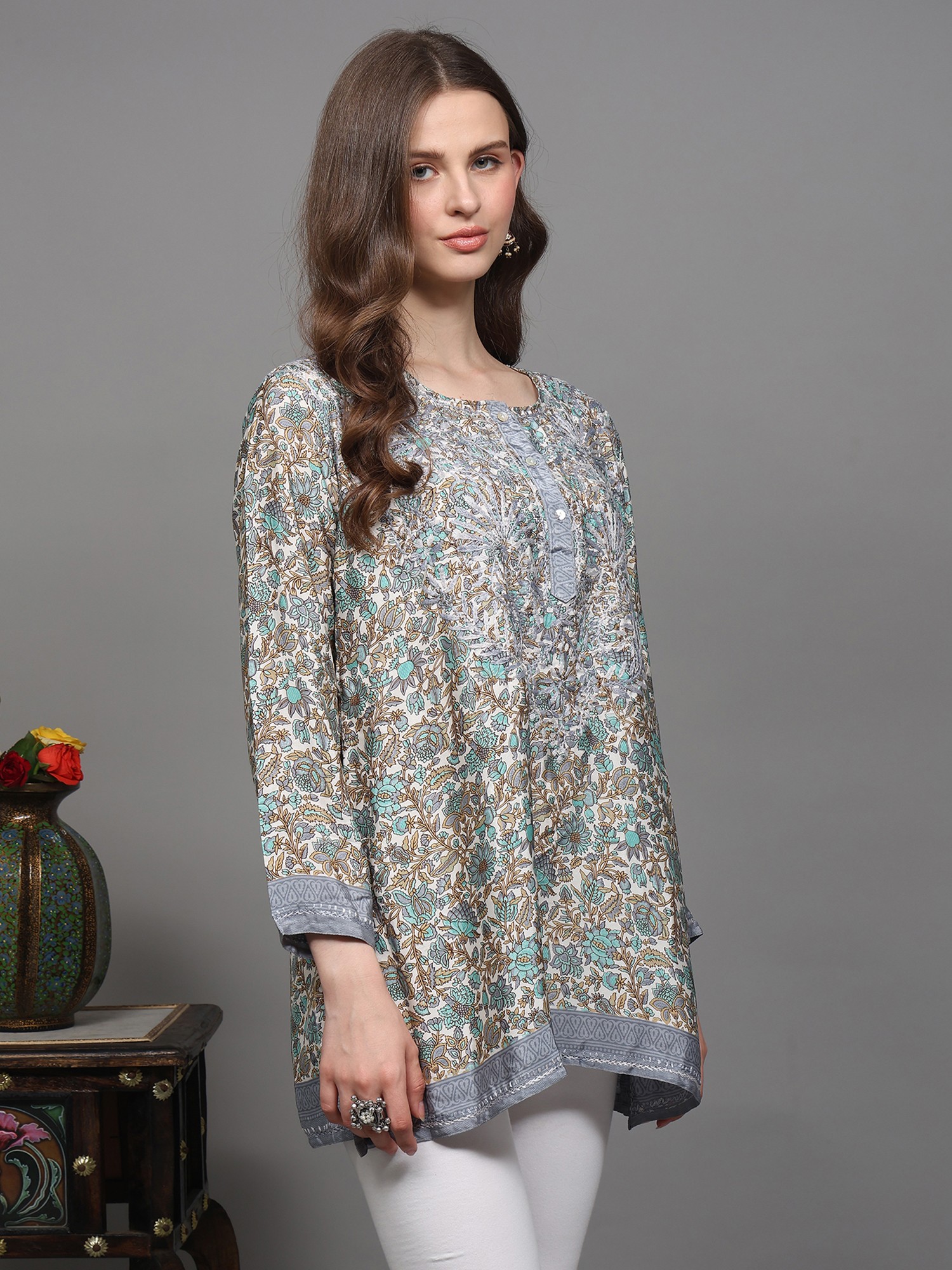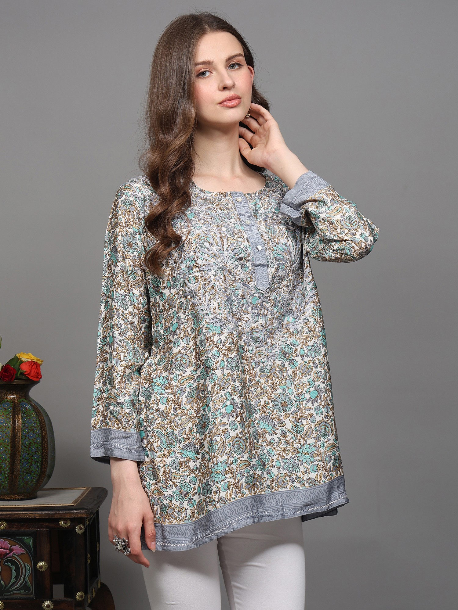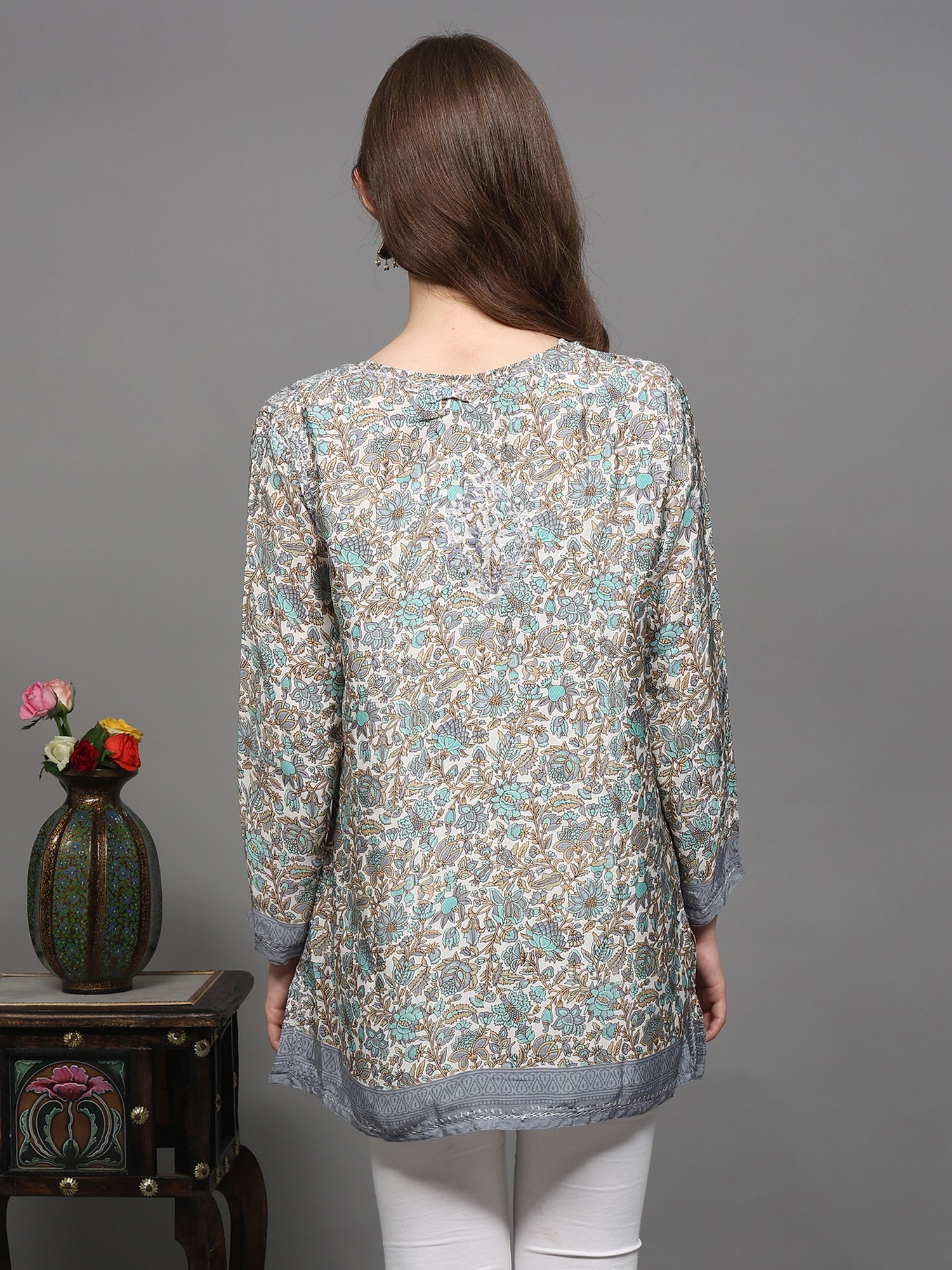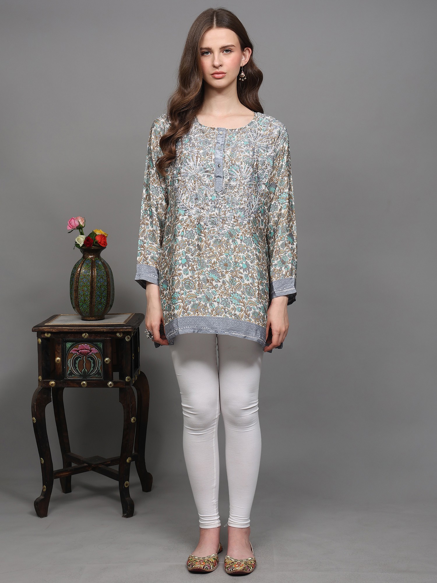 Black Kurti with Chikan Embroidered Flowers and Paisleys by Hand
