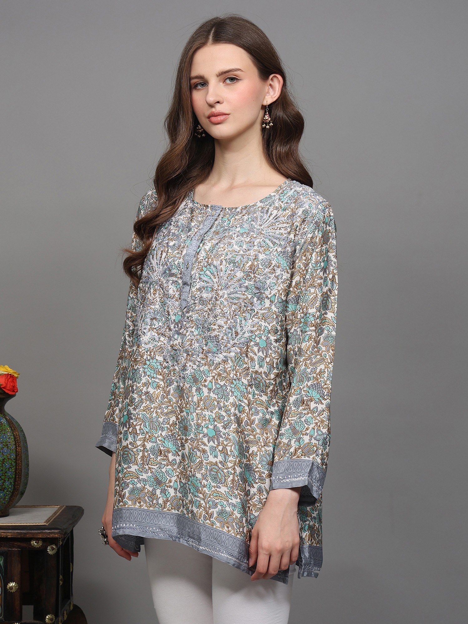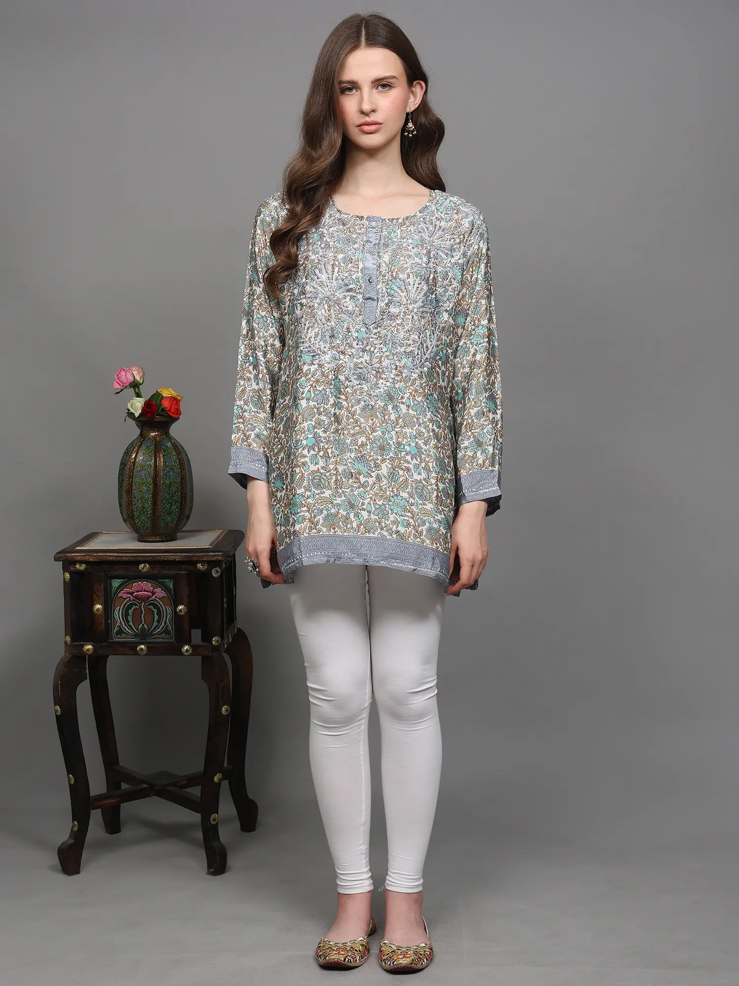 Baton Rouge-Purple Kashmiri Kurti with Aari Embroidered Flowers