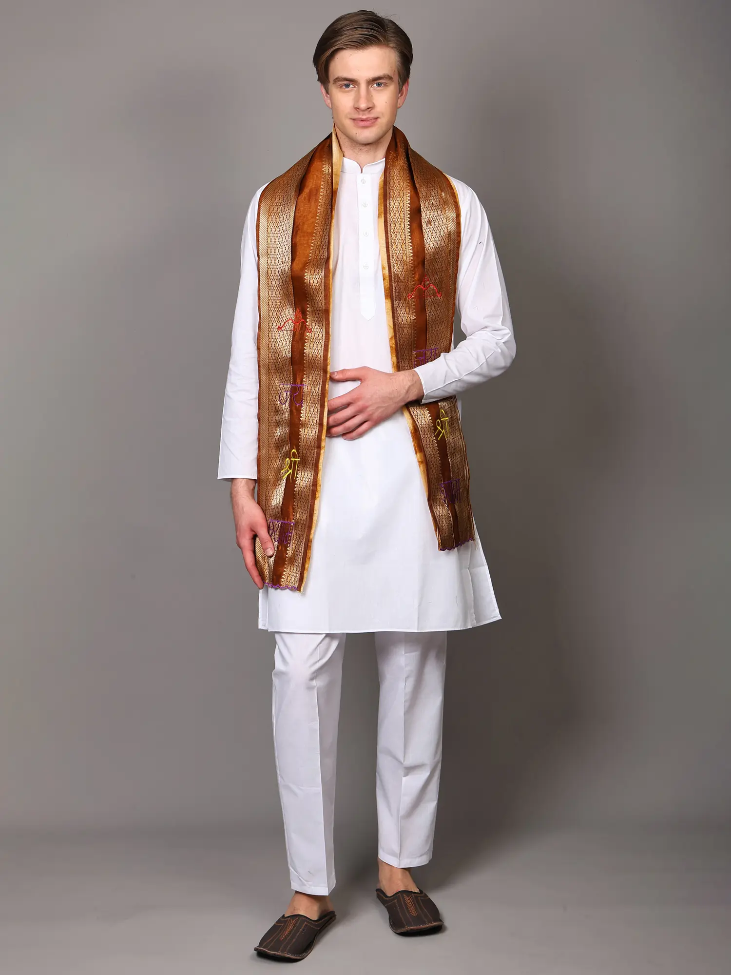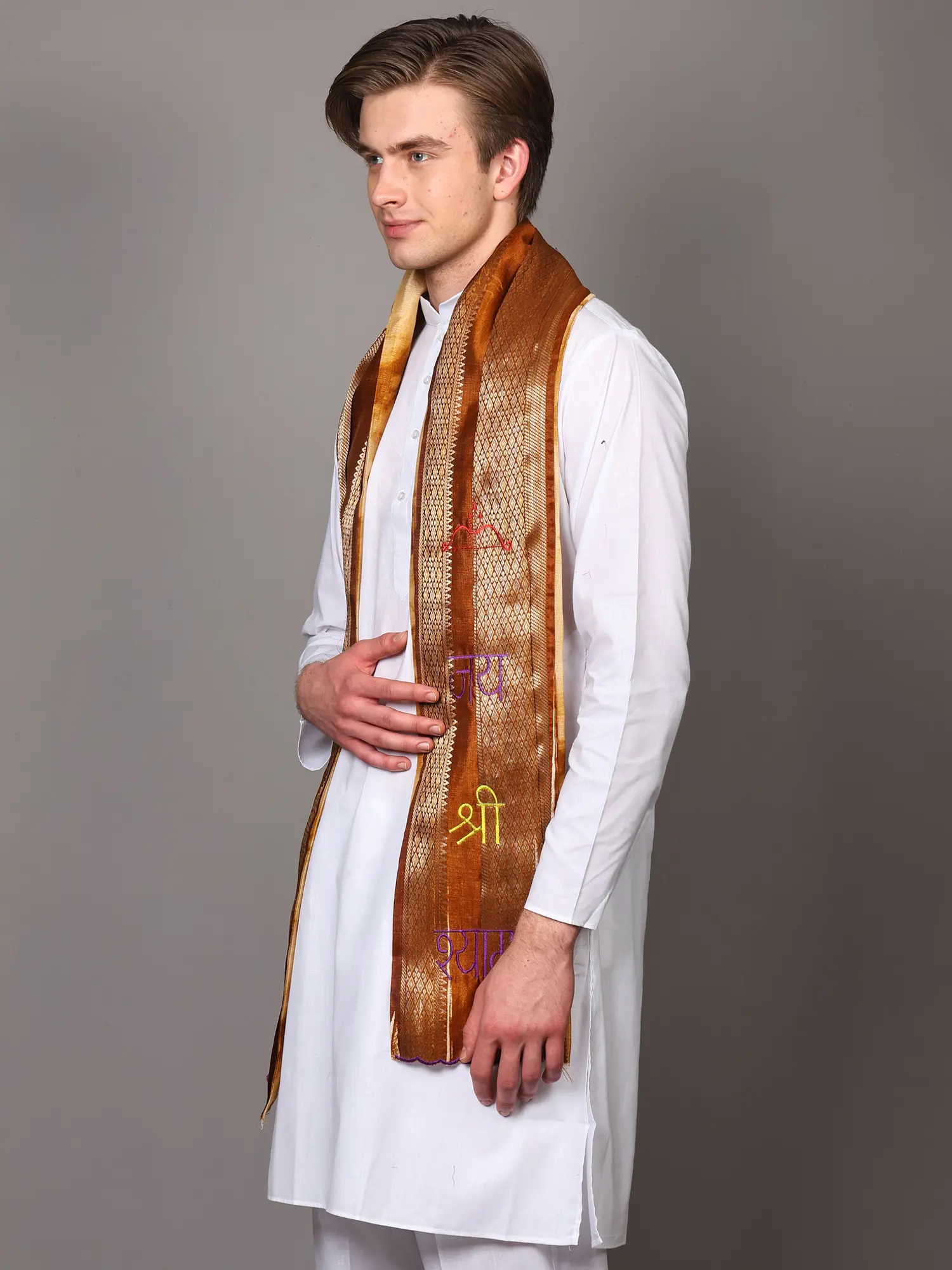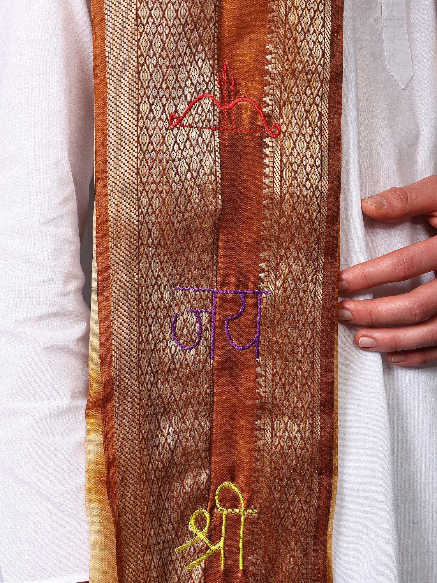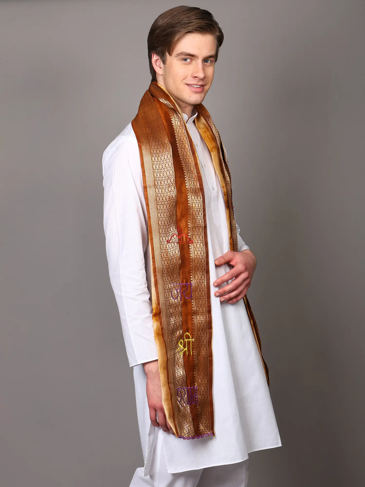 Orange and Yellow Lord Ganapati Prayer Scarf with woven Shri Ganeshay Namah Mantra (Unisex)