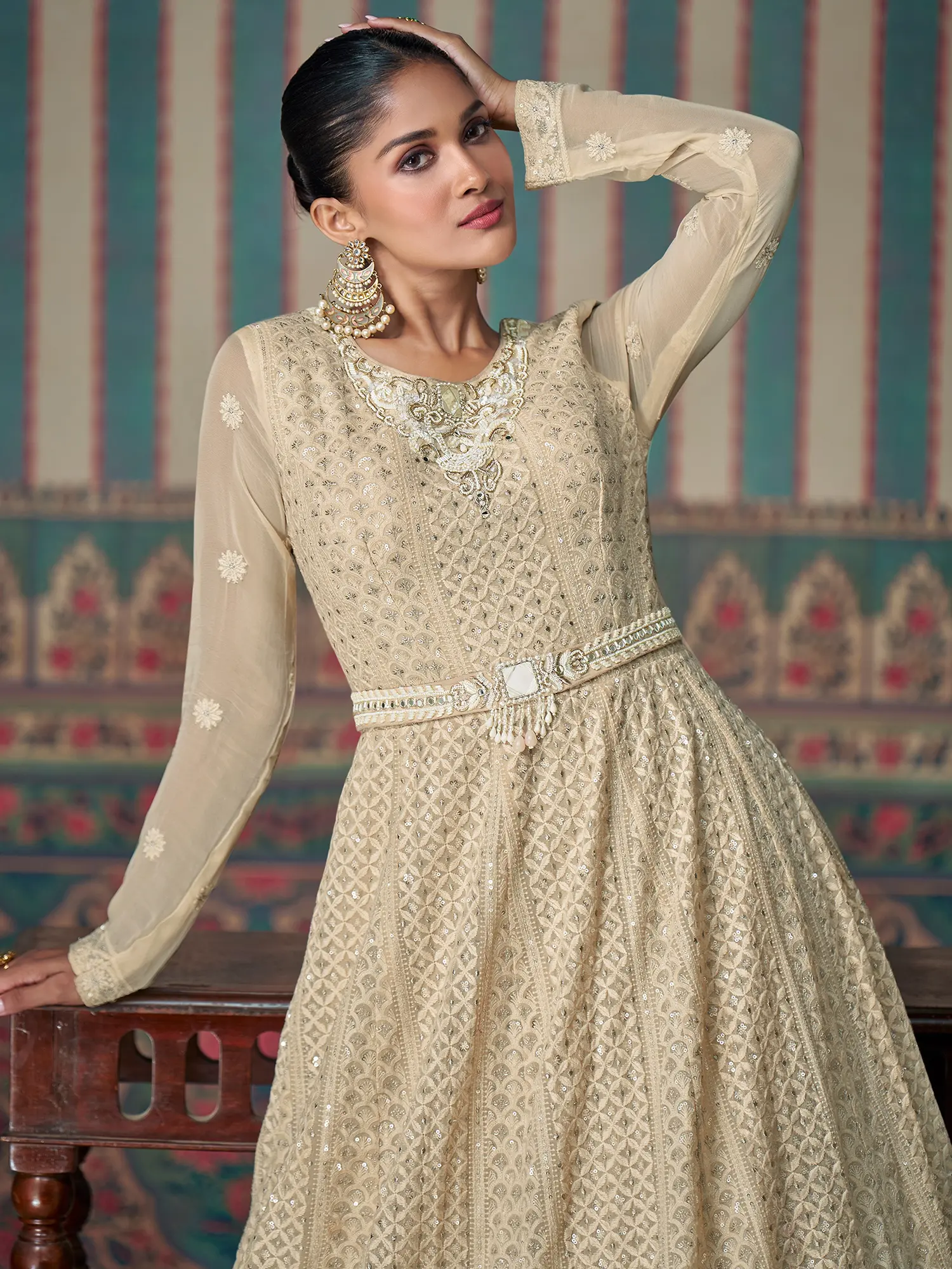 Georgette Sequins And Thread Embroidery Work Stunning Anarkali Gown With Dupatta