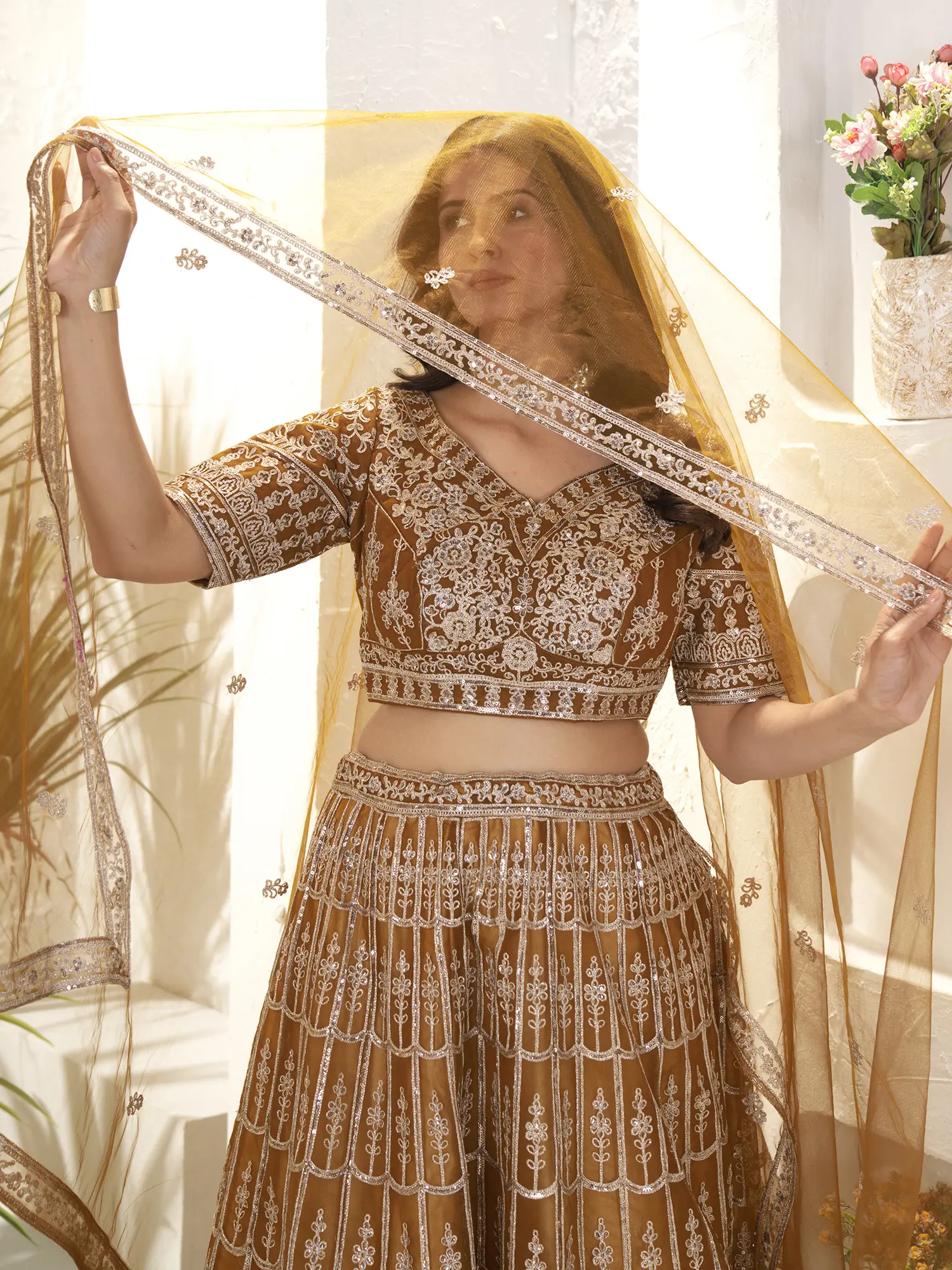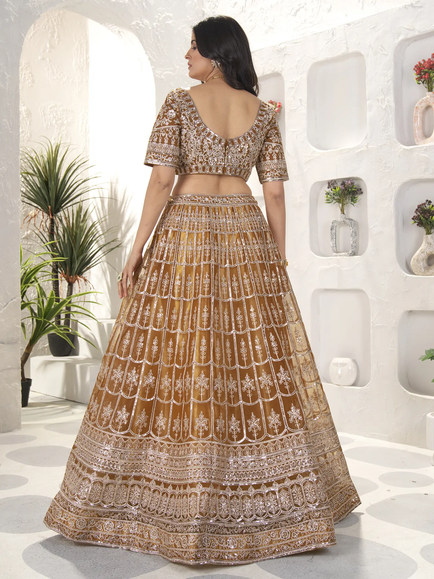 Sequins And Thread Embroidery Net Party Wear Lehenga Choli With Flower Pattern Matching Dupatta