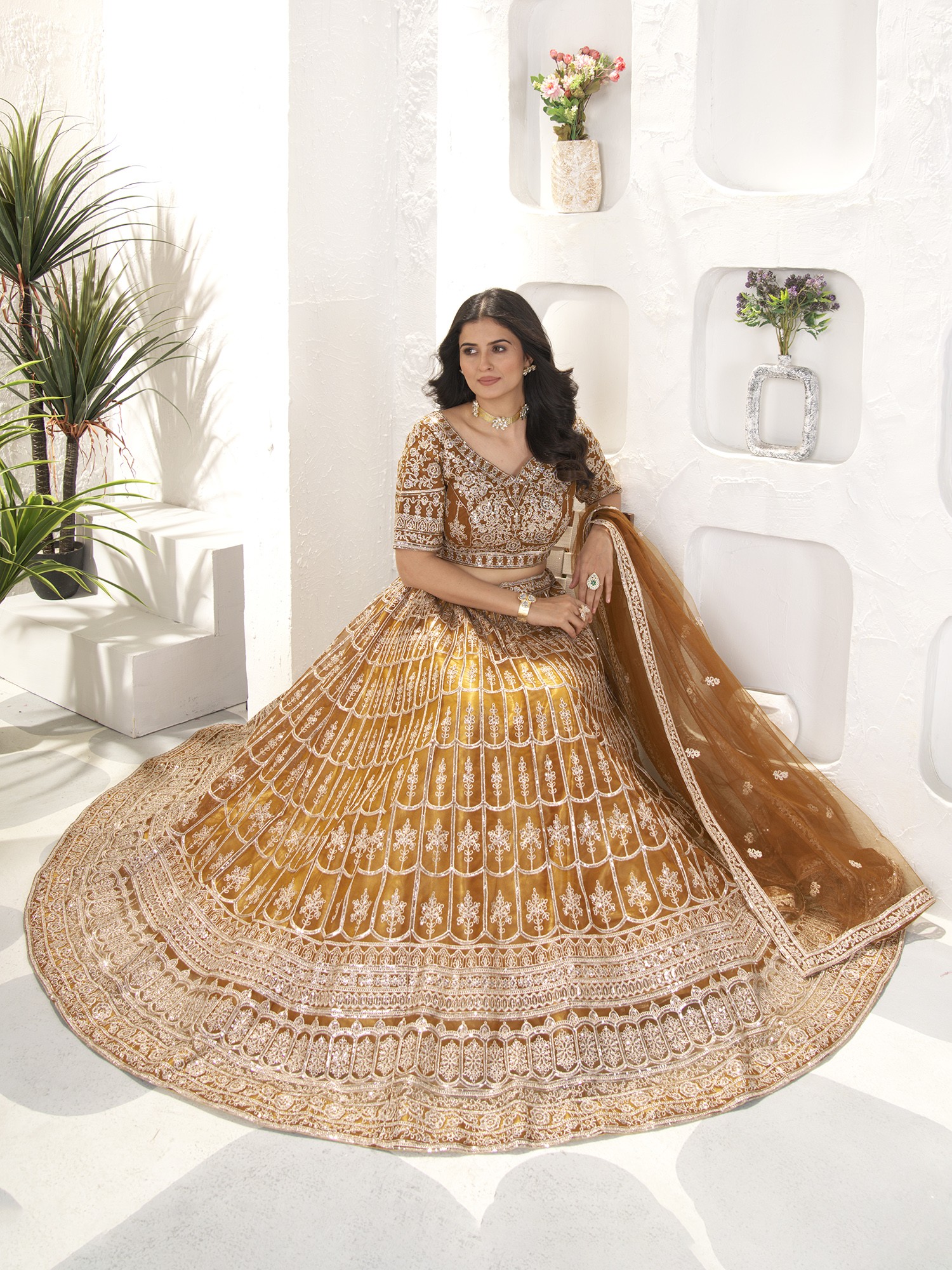 Heavy Floral Thread Embroidery Net Elegant Party Wear Lehenga Choli With Matching Dupatta