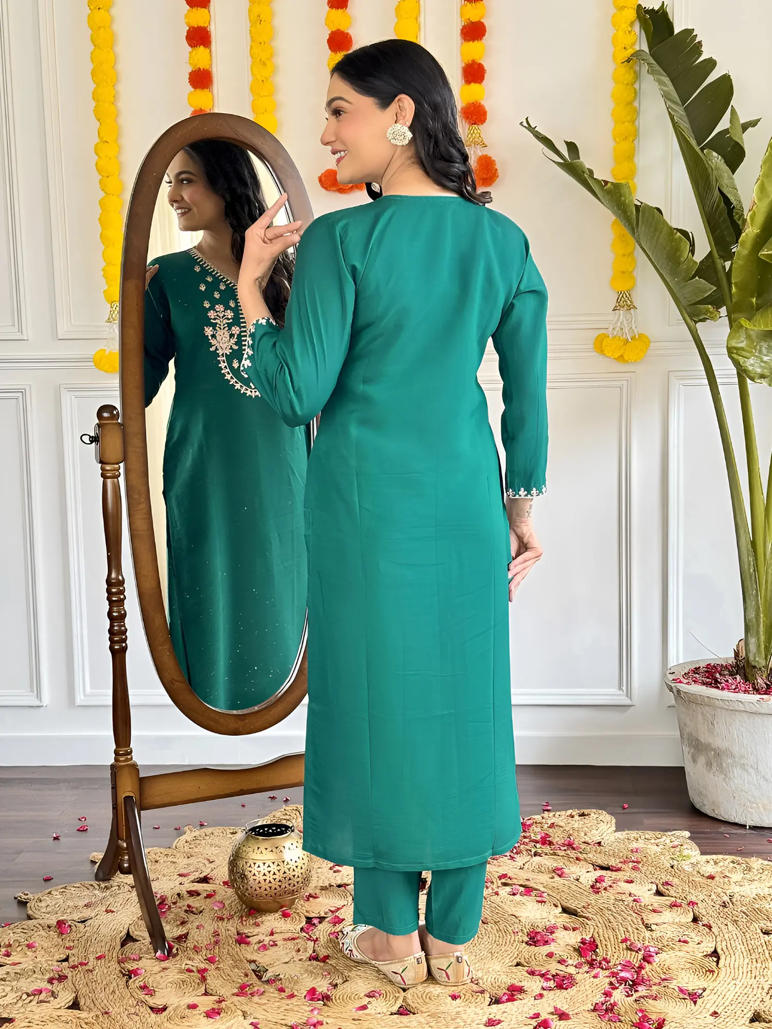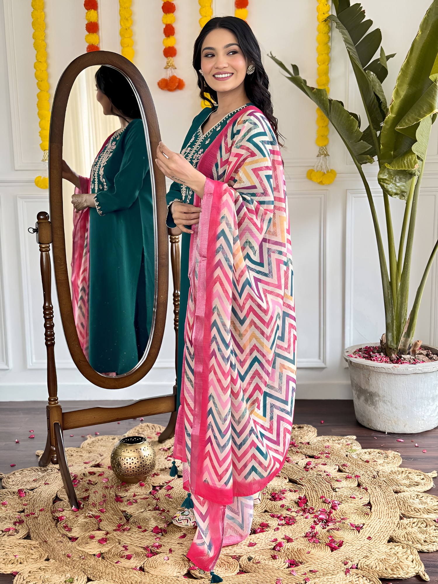 Attractive Embroidery Work Viscose Chanderi Stunning Kurta Set With Matching Dupatta