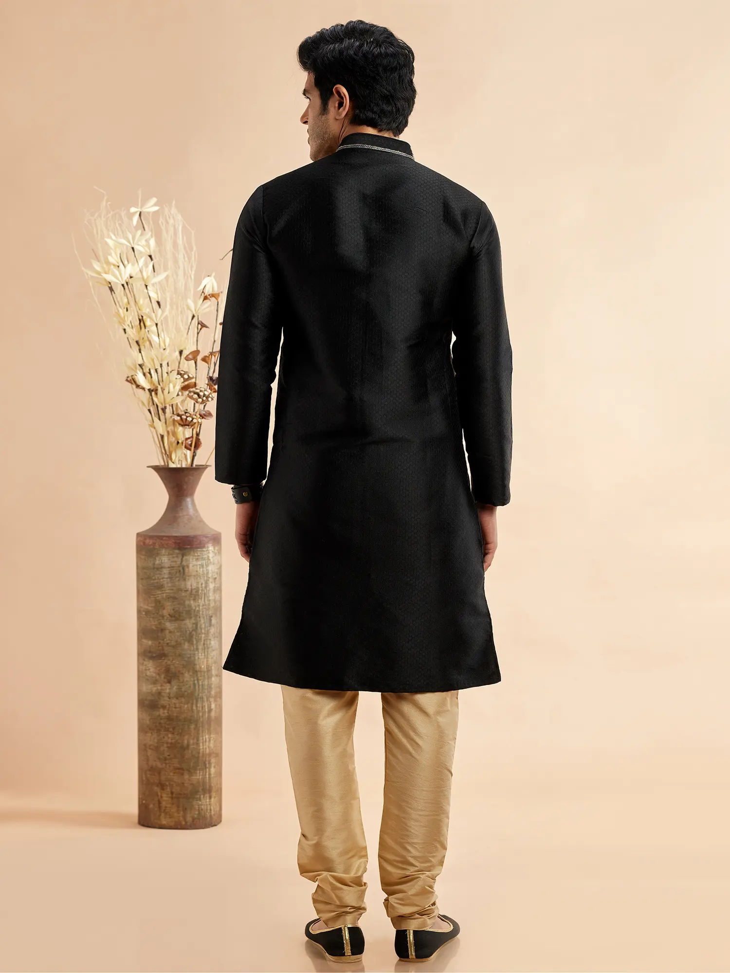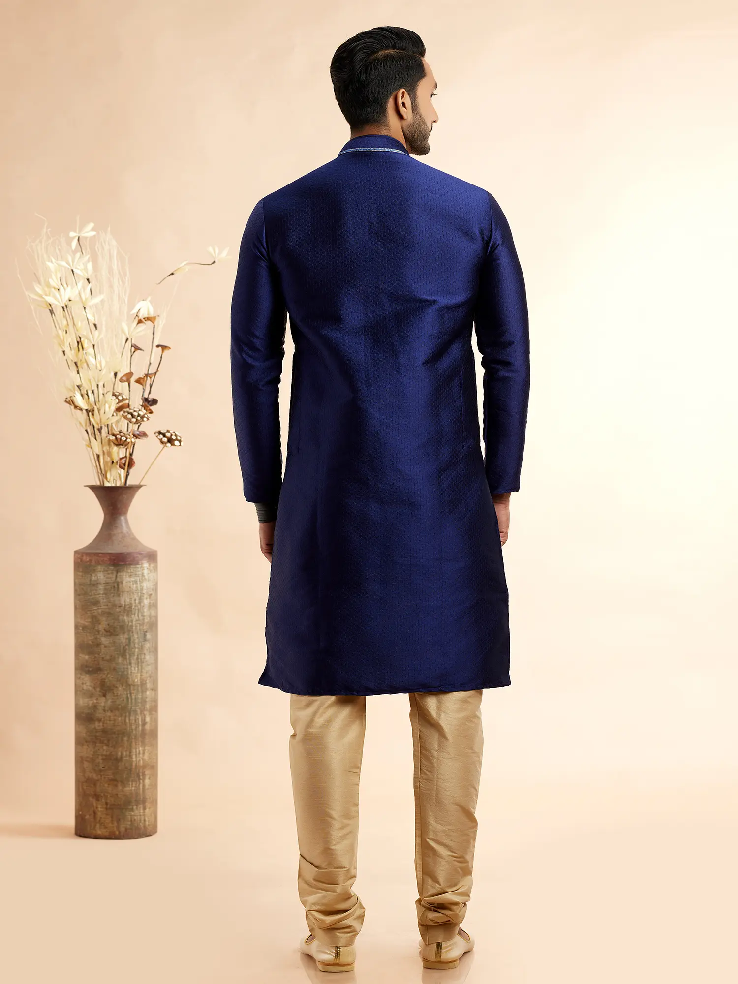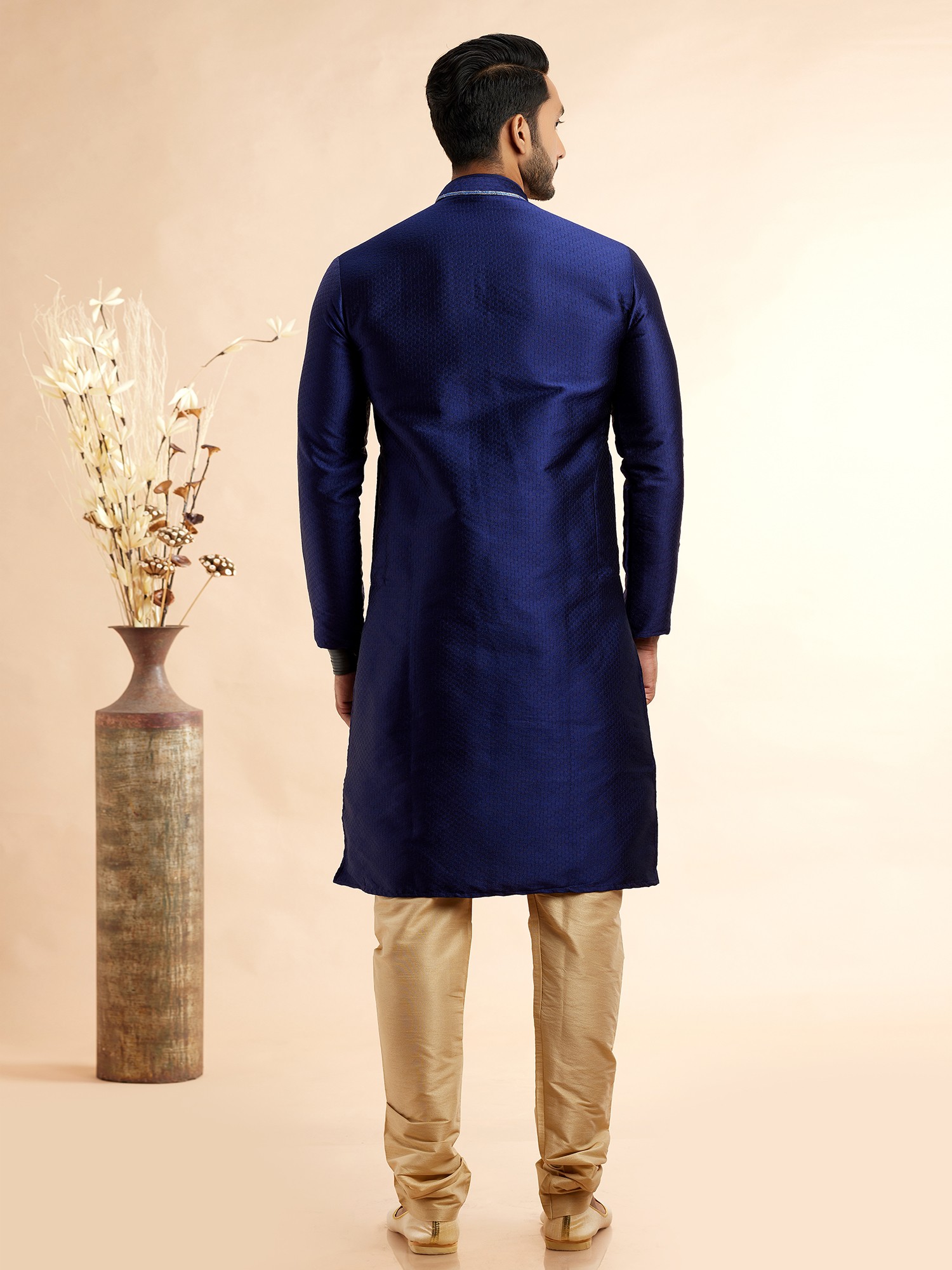Wedding Kurta Pajama Set with All-Over Woven Floral Motifs in Self