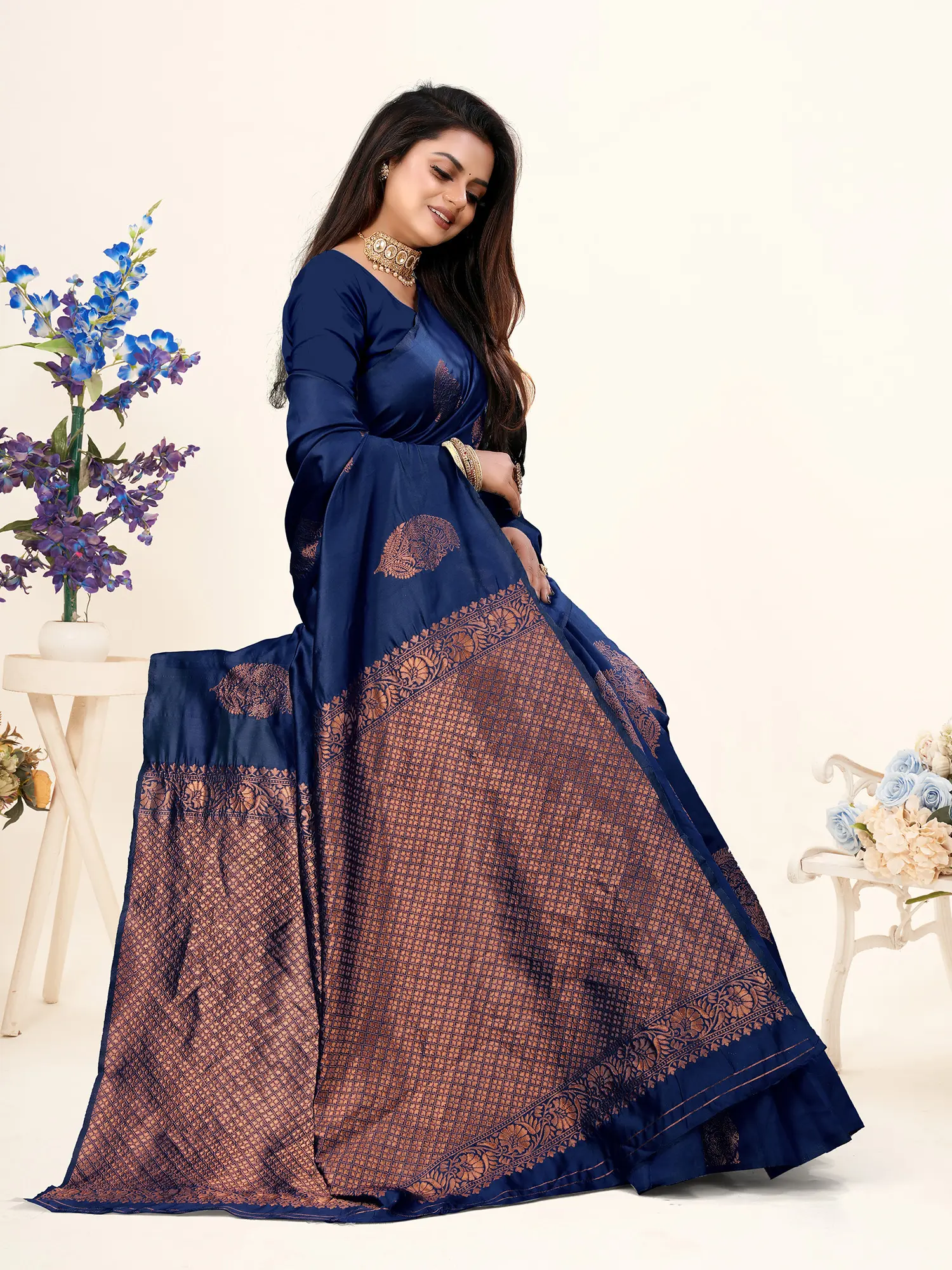 Floral Woven Lichi Silk Saree with Matching Blouse - Festive Elegance