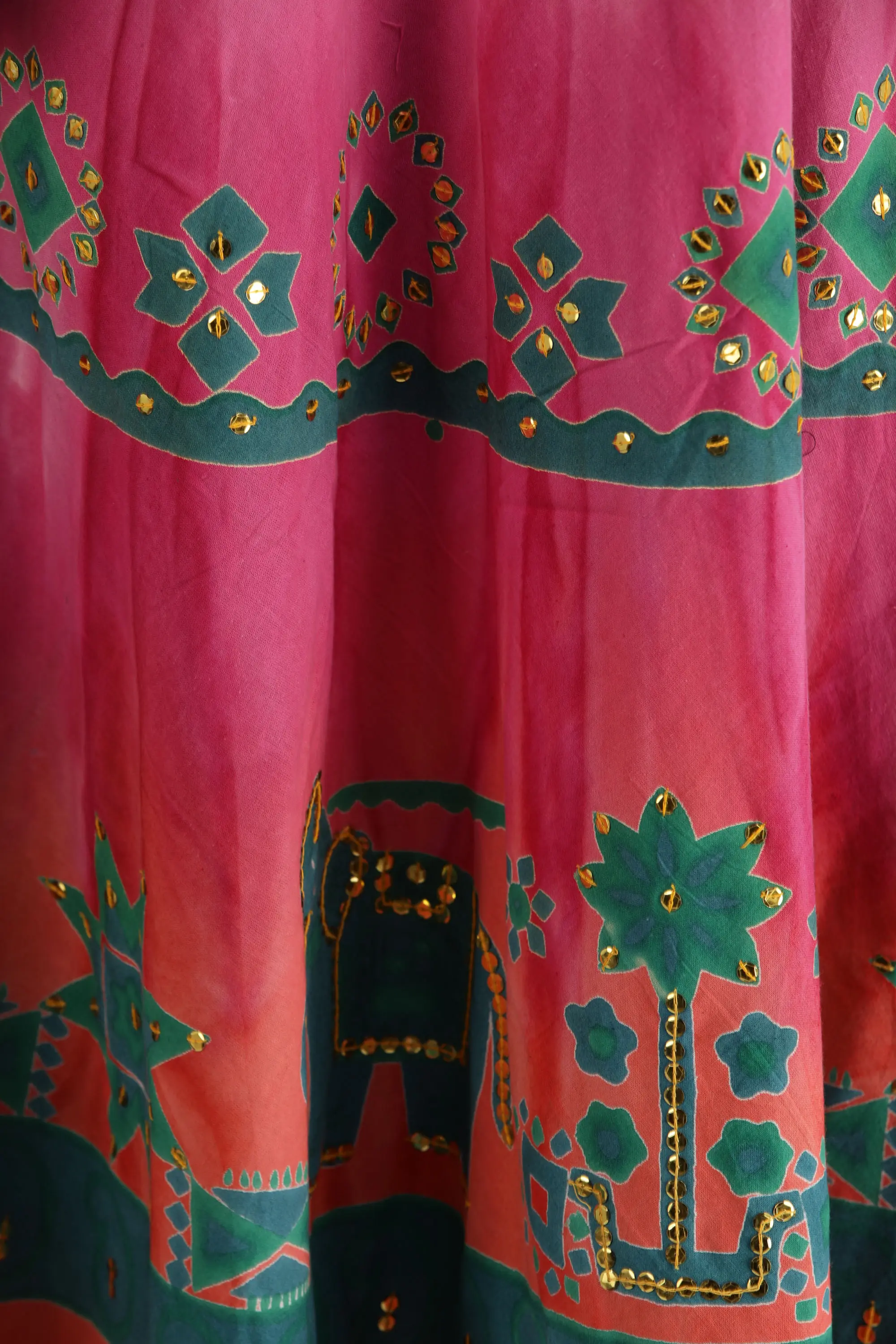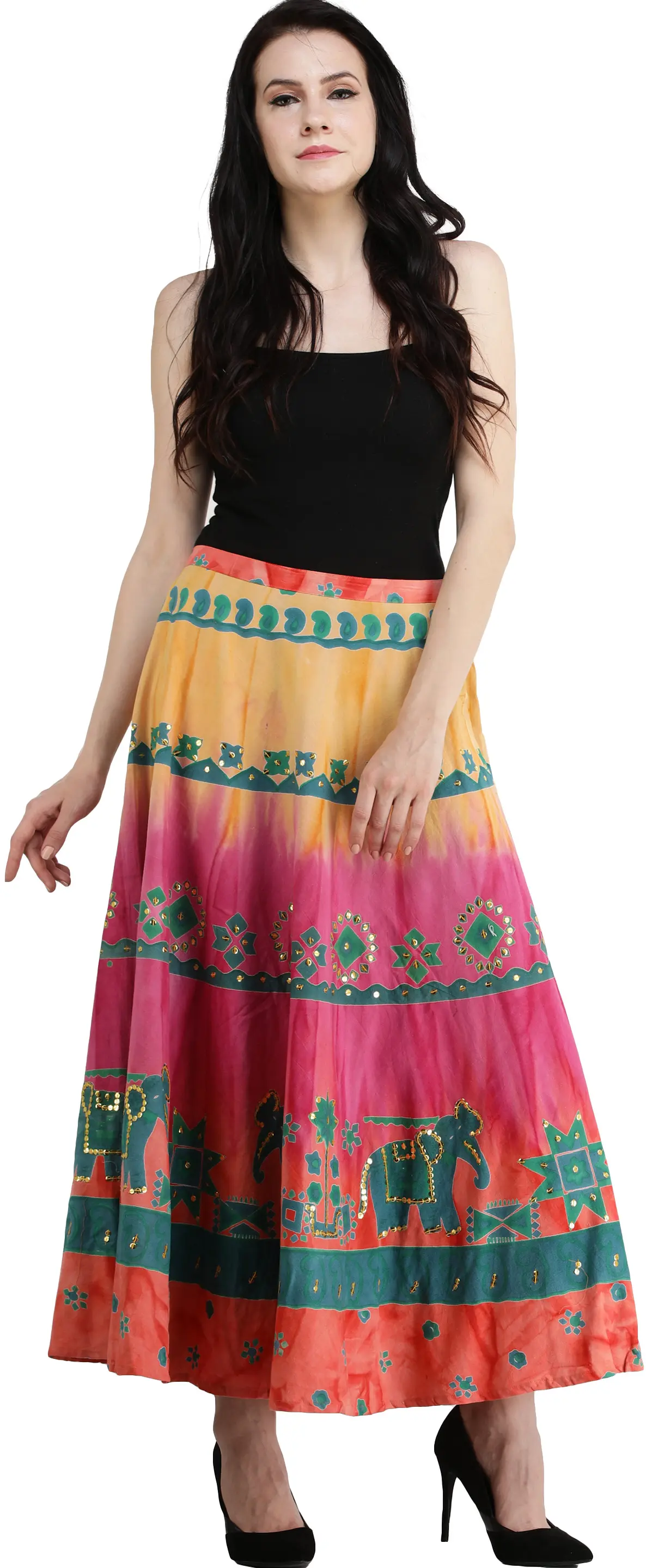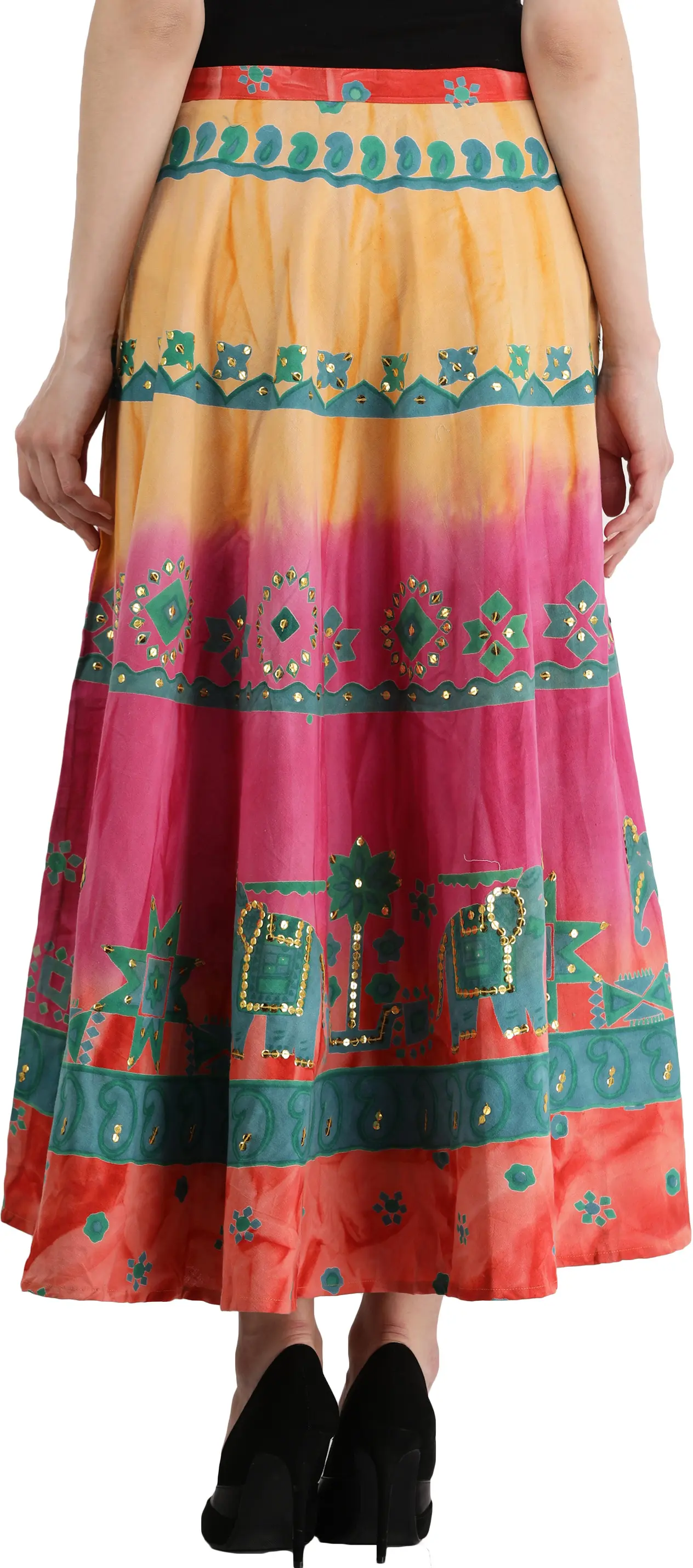 Wrap-On Long Skirt from Pilkhuwa with Printed Paisleys and Elephants
