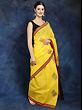 The soft and breathable fabric looks lovely with the timeless yellow hue, adorned with traditional patterns on the body and a luxurious contrast element on the pallu, with a row of tassels that add a stylish effect to the traditional drape.