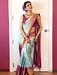 Enchanting Soft Lichi Silk Saree Rich Pallu Jacquard Work Turquoise Magenta Fusion Ethnic Festive Party Wear